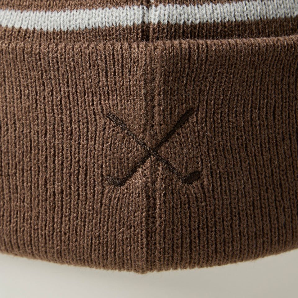 キャップ ニットキャップ つば付きニット帽 配色ロゴラインデザイン ロゴ刺繍付 ゴルフ