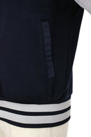ブルゾン グランドコート風デザイン 異素材切替デザイン 配色デザイン 袖裏起毛 保温 袖ミニポケット付き バックロゴサガラワッペン ゴルフウェア