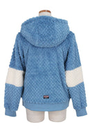 ブルゾン フリースボアブルゾン ボアパーカー 両面ボア素材 保温 ストレッチ フード付き 袖配色切替 ロゴ刺繍デザイン