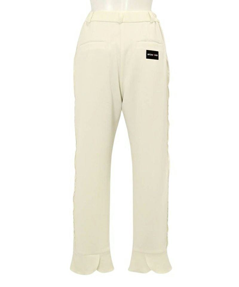 パンツ ロングパンツ 8分丈 クロップドパンツ ジャージ素材 ウエスト一部ゴム サイドフリル 裾フリルスリット ゴルフウェア