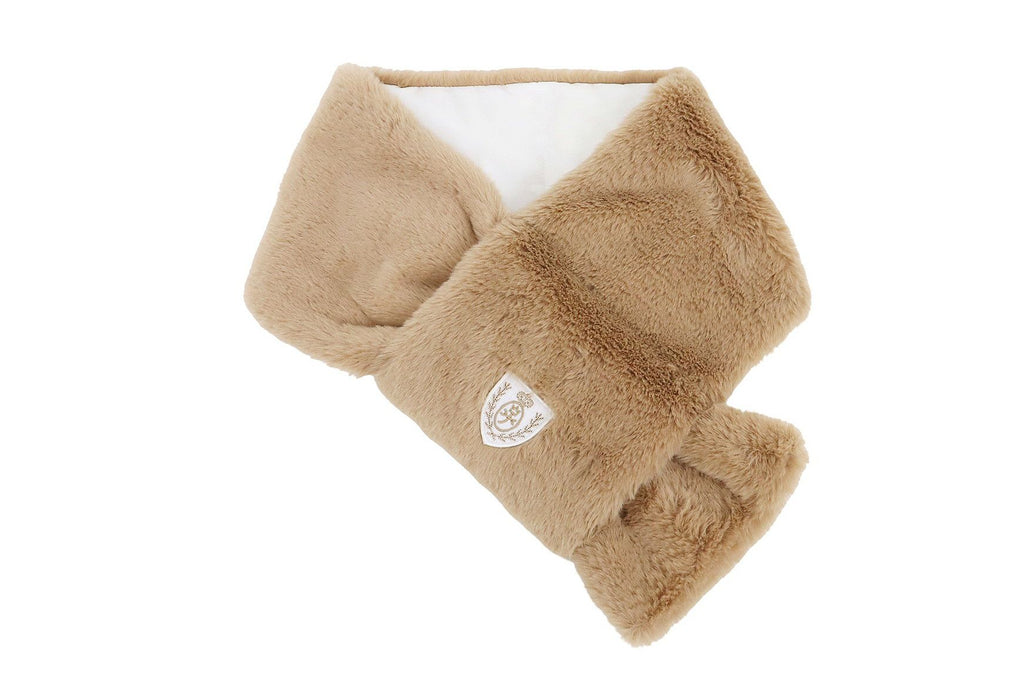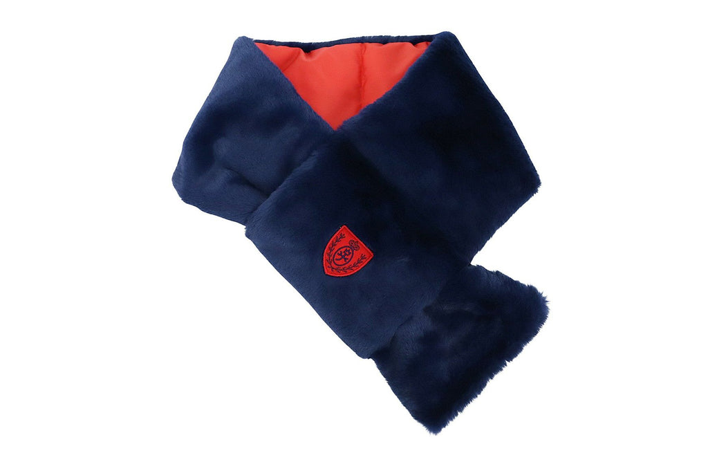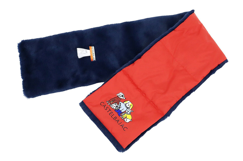 マフラー ダウン混 中綿マフラー 裏起毛 リバーシブル 保温 2WAY タフタ×フェイクファー 犬プリント 家紋エンブレム付 洗えるダウン 花粉が付きにくい ゴルフ
