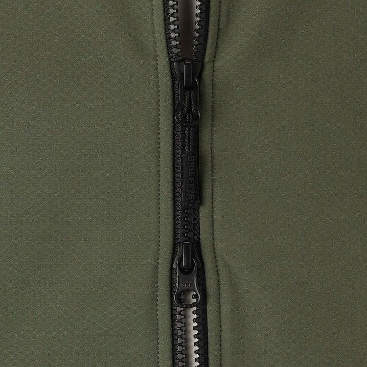 生地の表面は風を通さず小雨にも対応、生地の裏面は起毛がかったフリースのような質感で、生地の厚みを極力抑えながらも抜群の保温性を確保している。