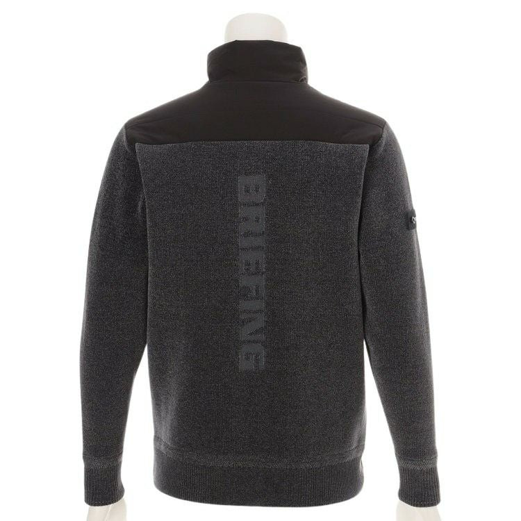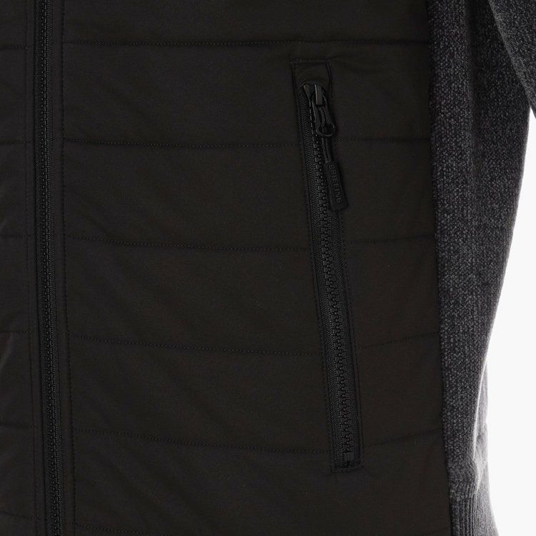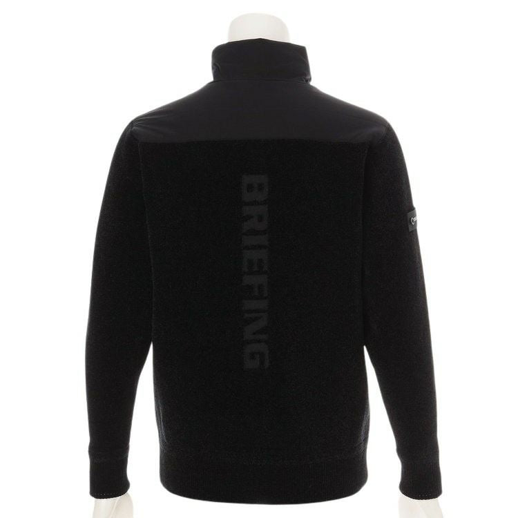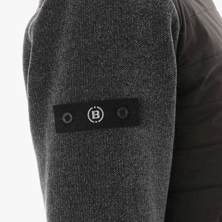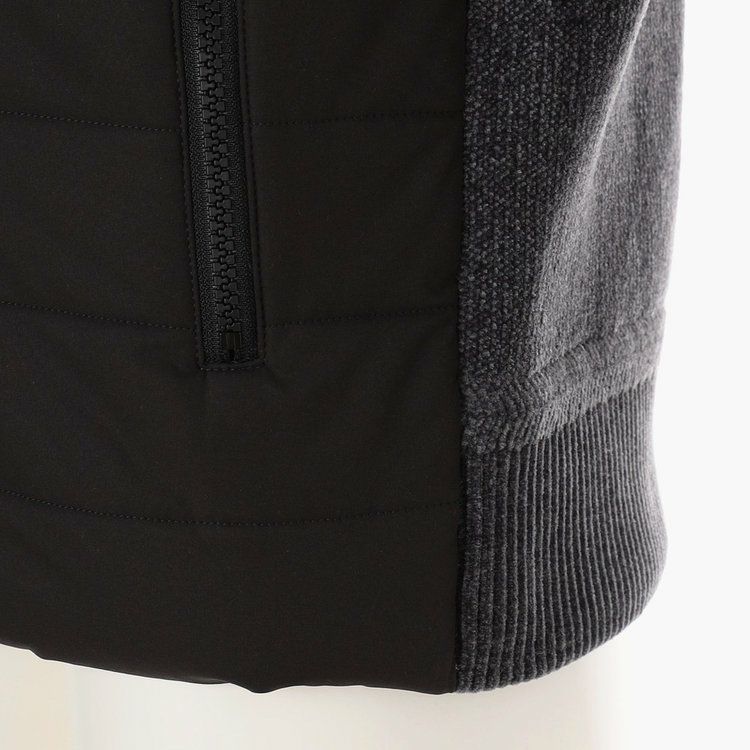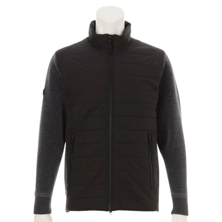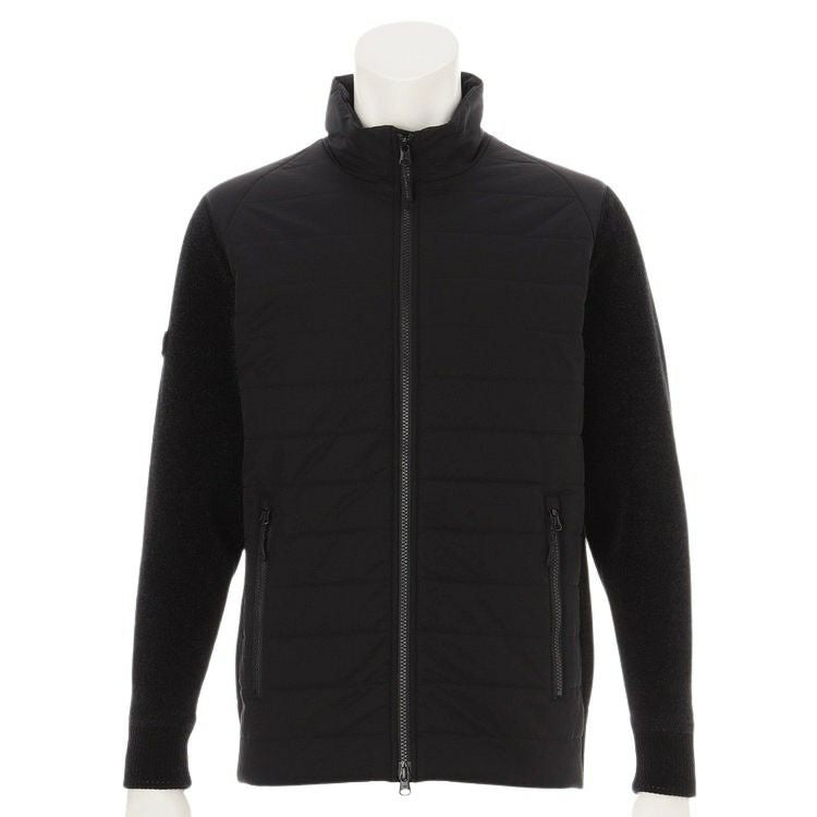 ブルゾン 前身頃中綿入 ニットブルゾン 防風裏地付 保温 モールヤーンニット×キルティング 異素材切替 バックロゴデザイン ゴルフウェア
