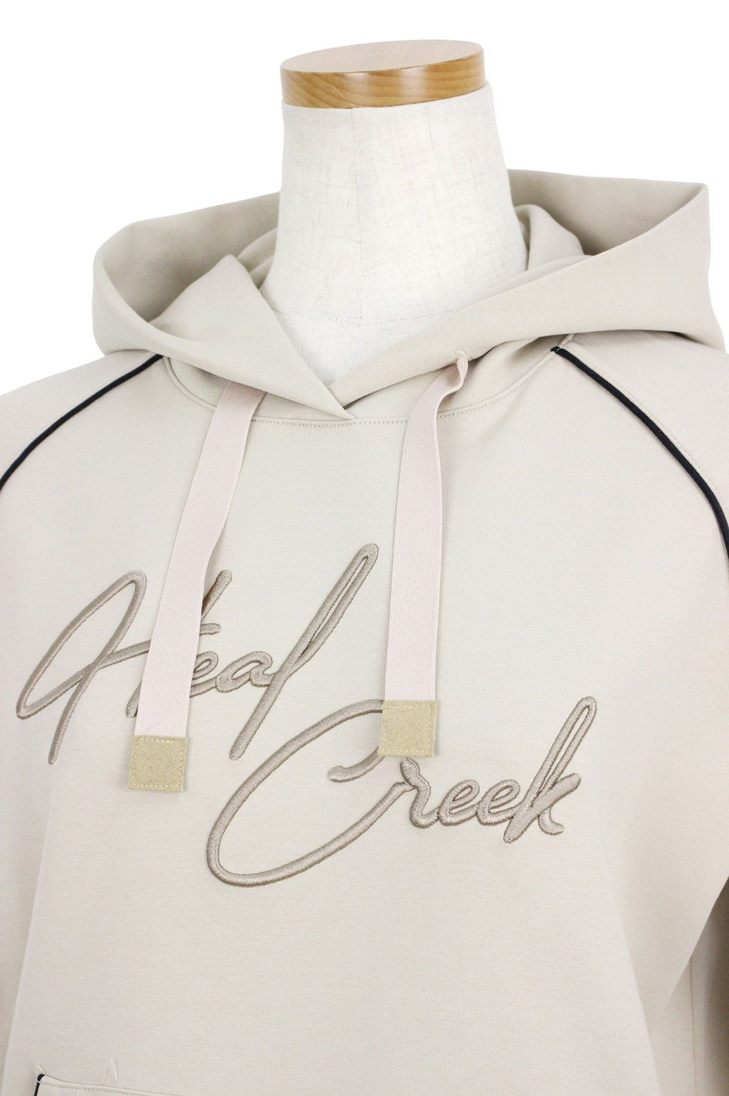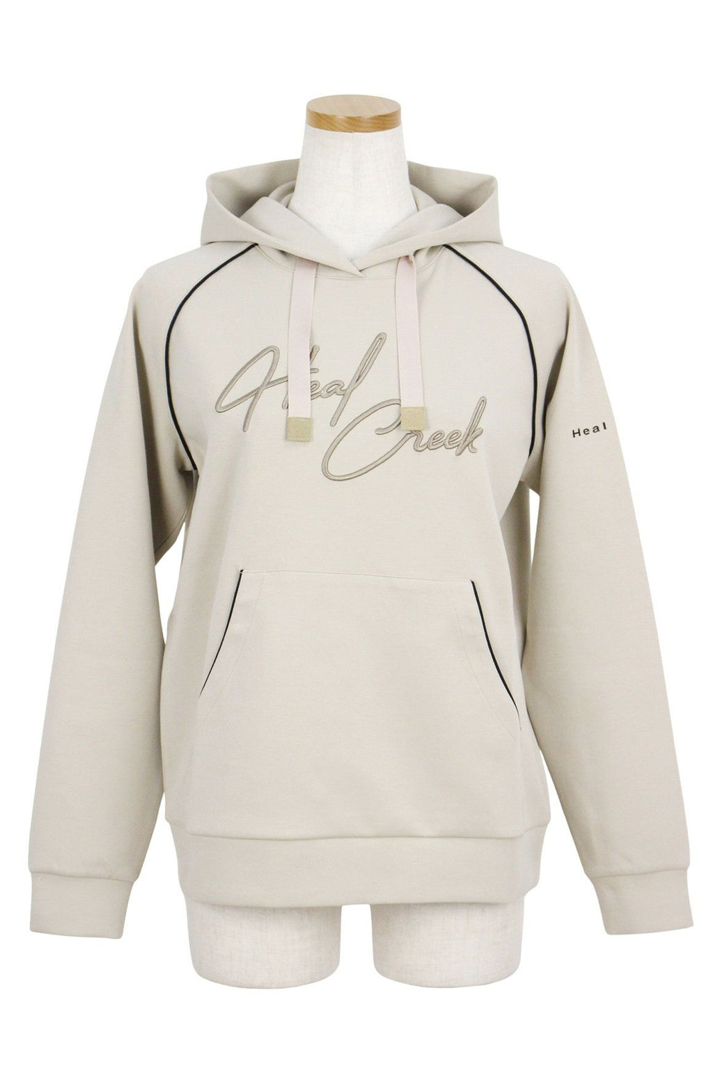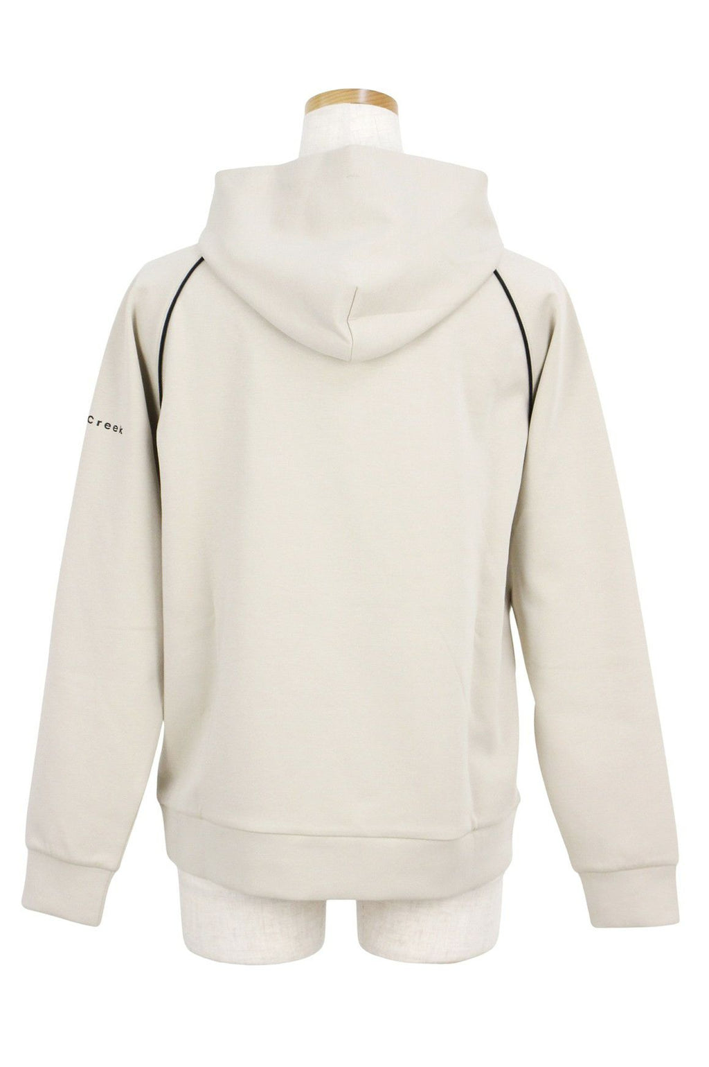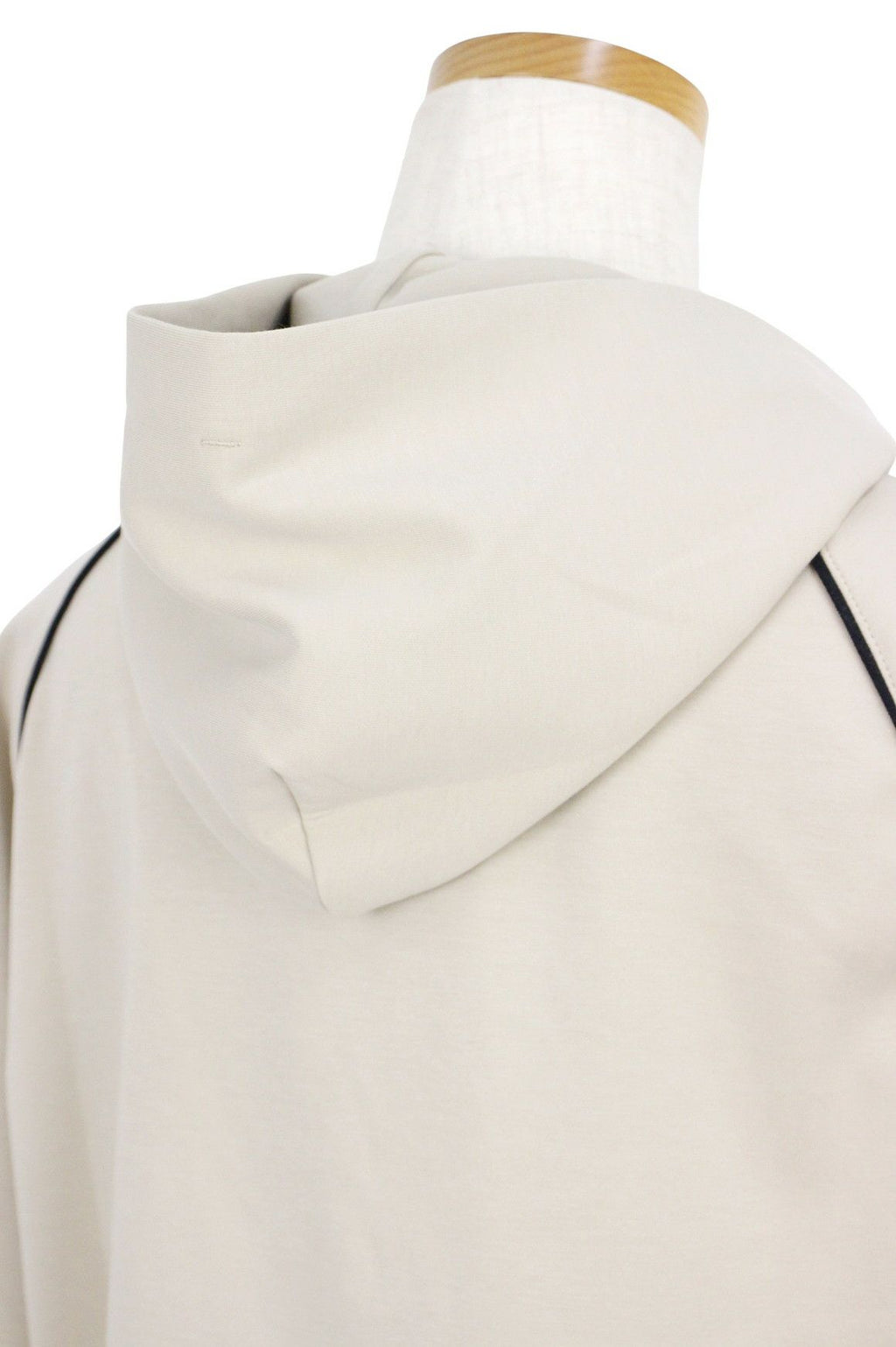シックな配色のパイピングアクセントが上品な雰囲気を演出し、洗練されたスタイルを提供します。モダンで着心地の良いフーディです。