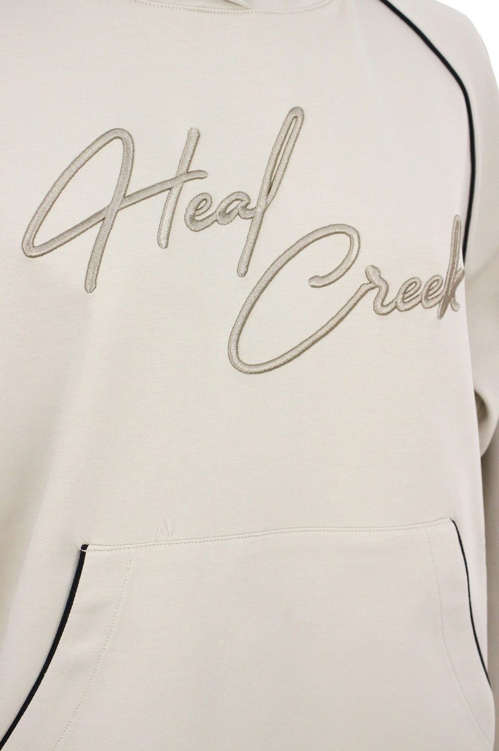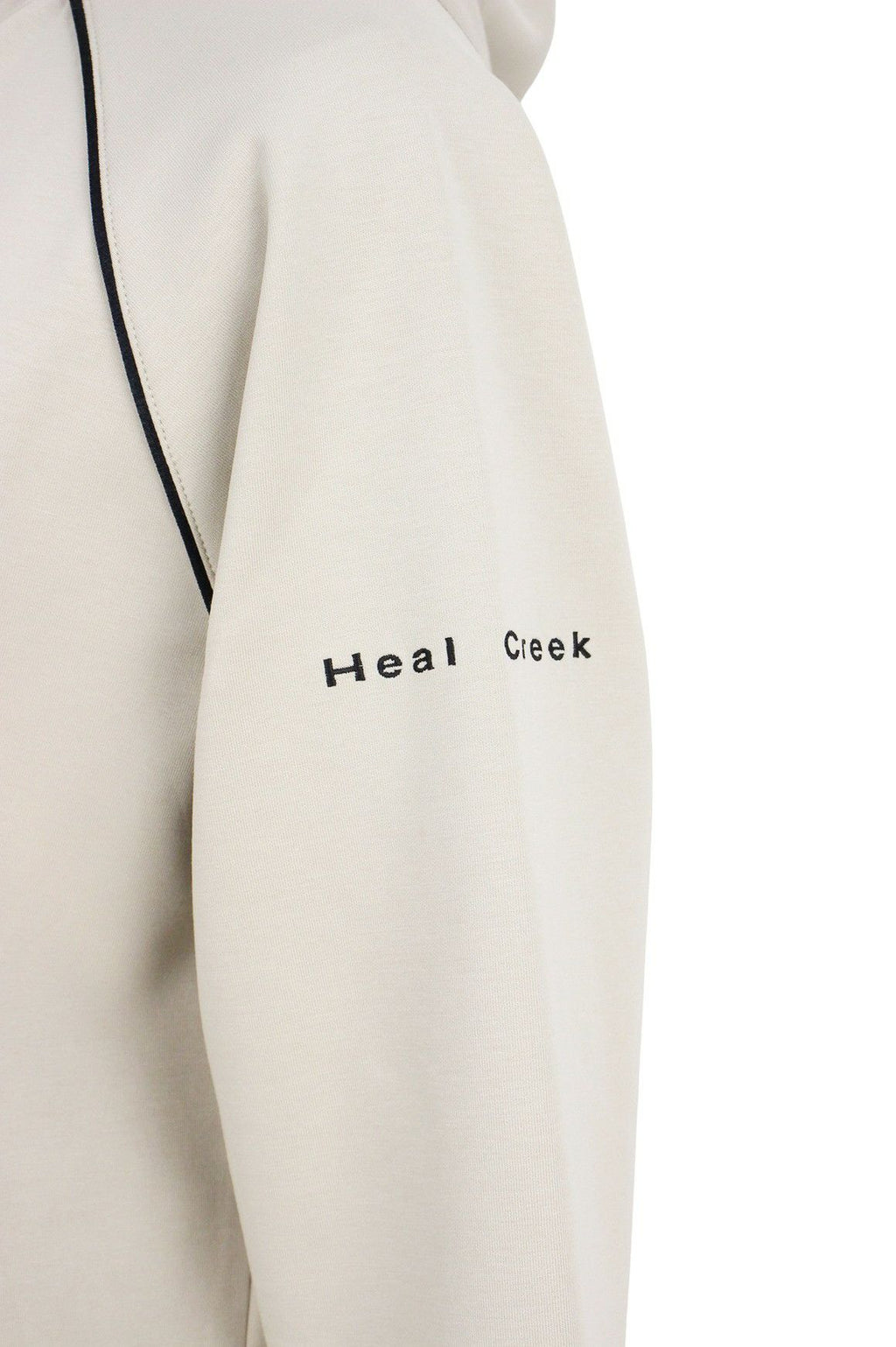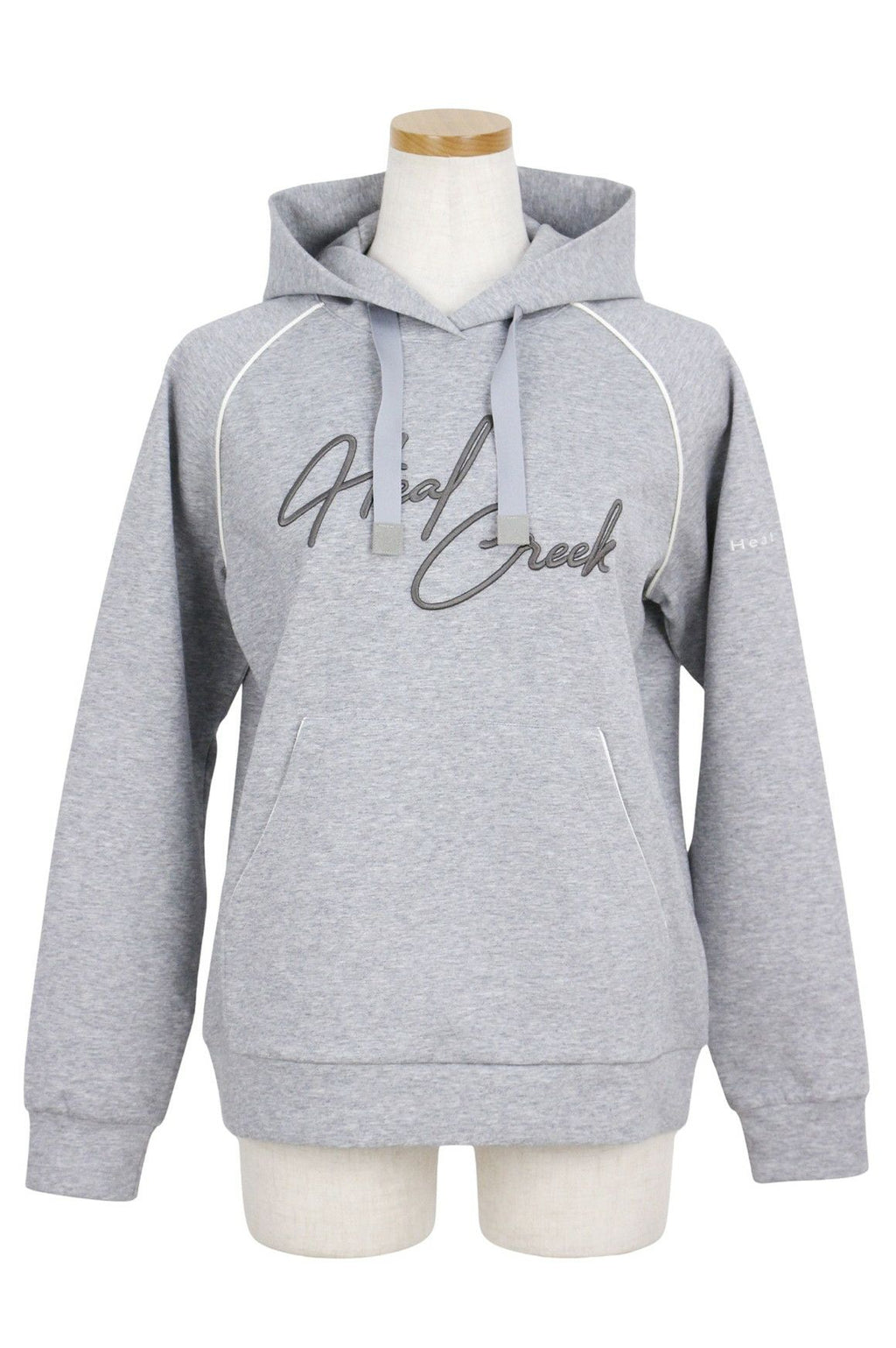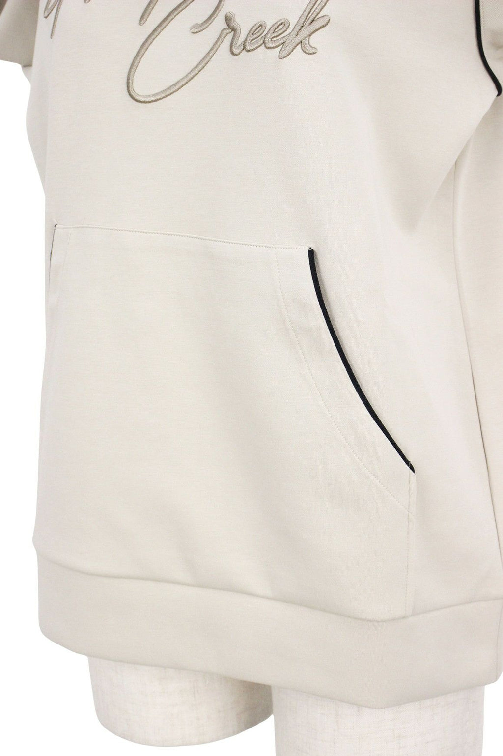 シックな配色のパイピングアクセントが上品な雰囲気を演出し、洗練されたスタイルを提供します。モダンで着心地の良いフーディです。