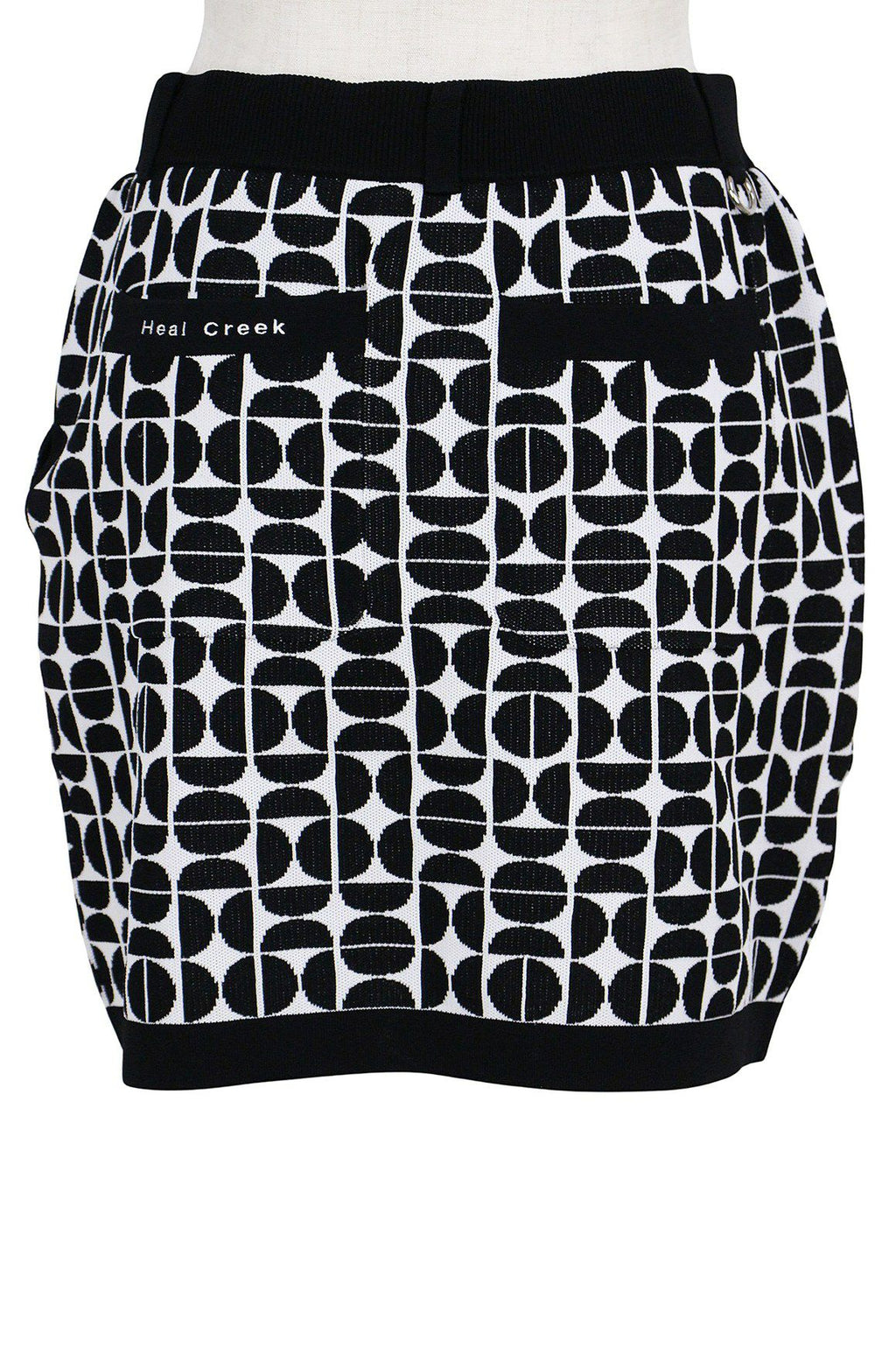 スカート ニットスカート ウエストゴム セミサークル柄 ダブルジャカード プルオン仕様 裏地付き ゴルフウェア