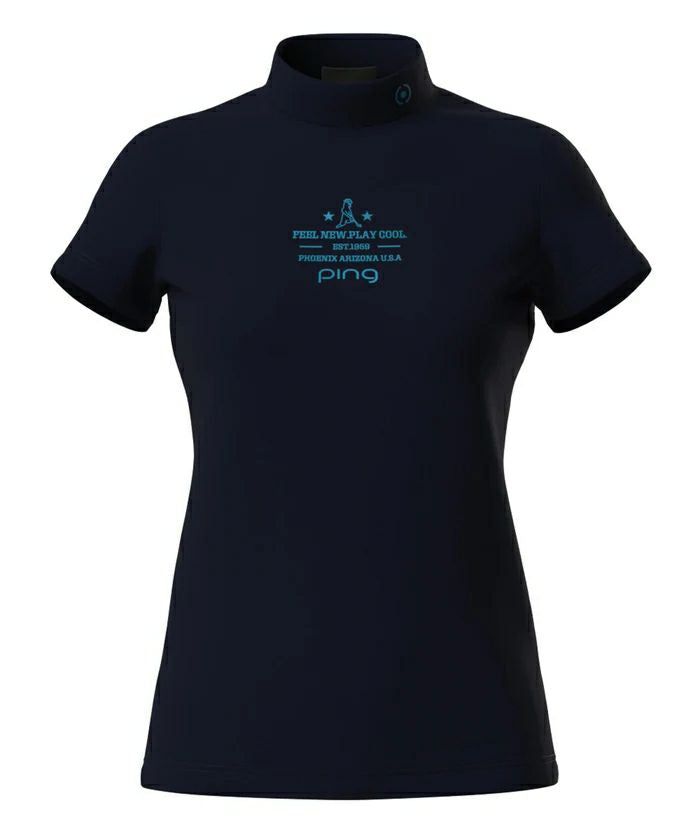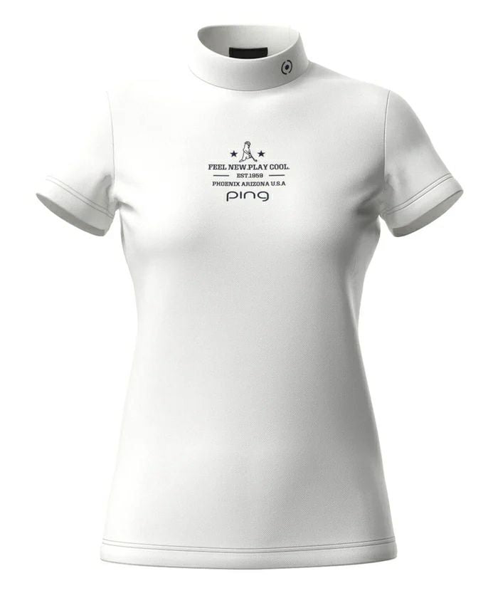 半袖ハイネックシャツ 鹿の子素材 ロゴプリント