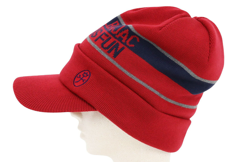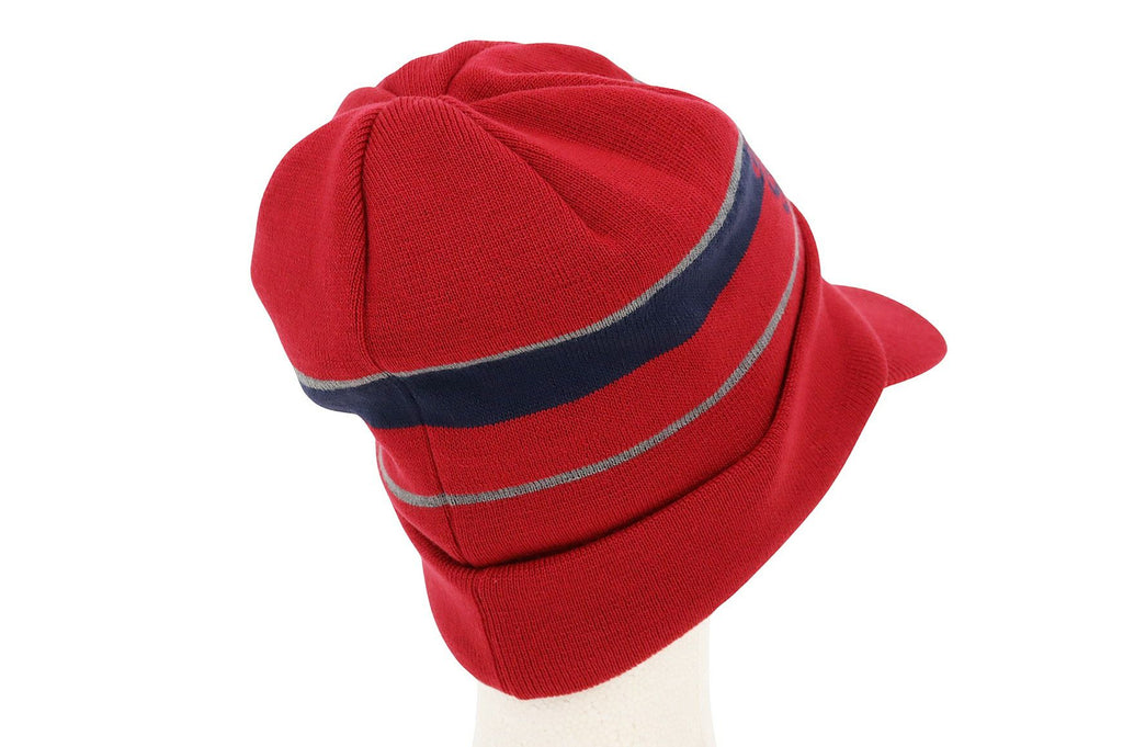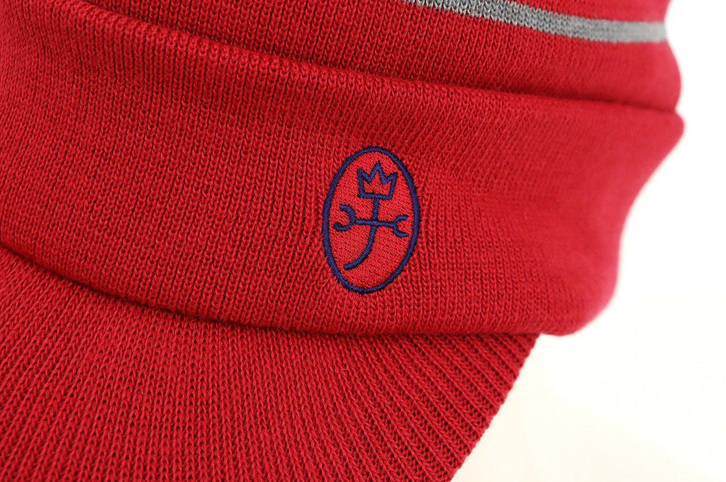 キャップ ニットキャップ つば付きニット帽 蓄熱裏地付 保温 ロゴラインデザイン 家紋刺繍付 ゴルフ