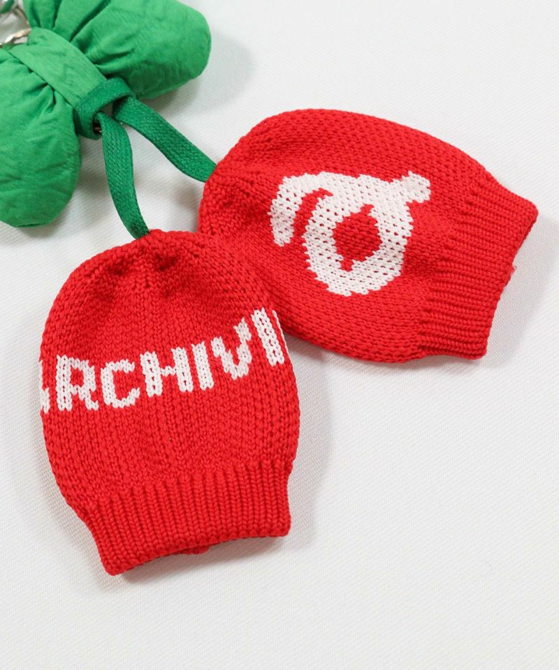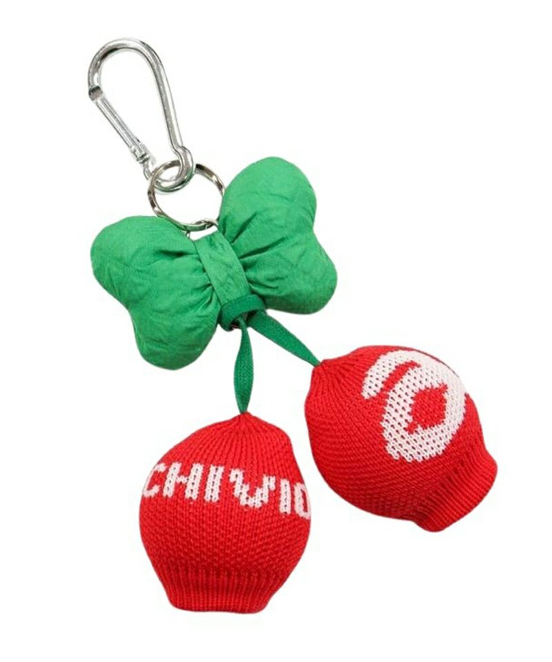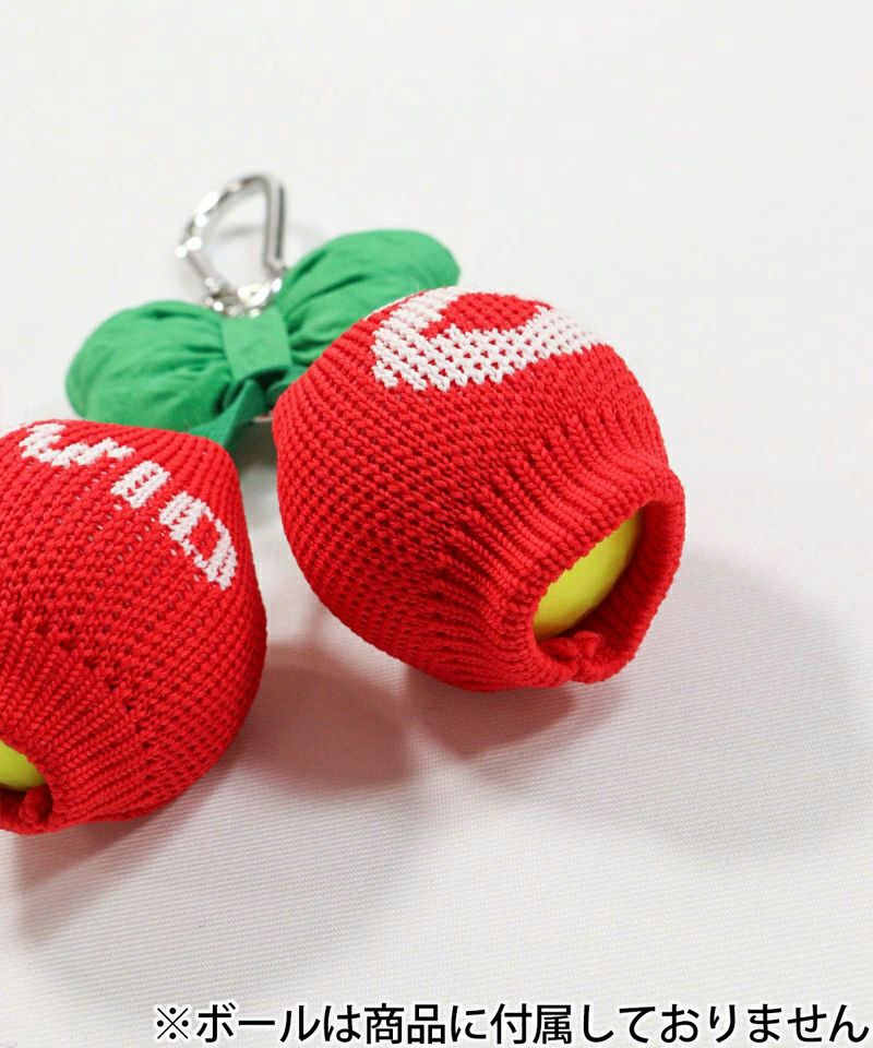 ボールケース ボールホルダー 2個用 チェリー型ニット ロゴジャガード