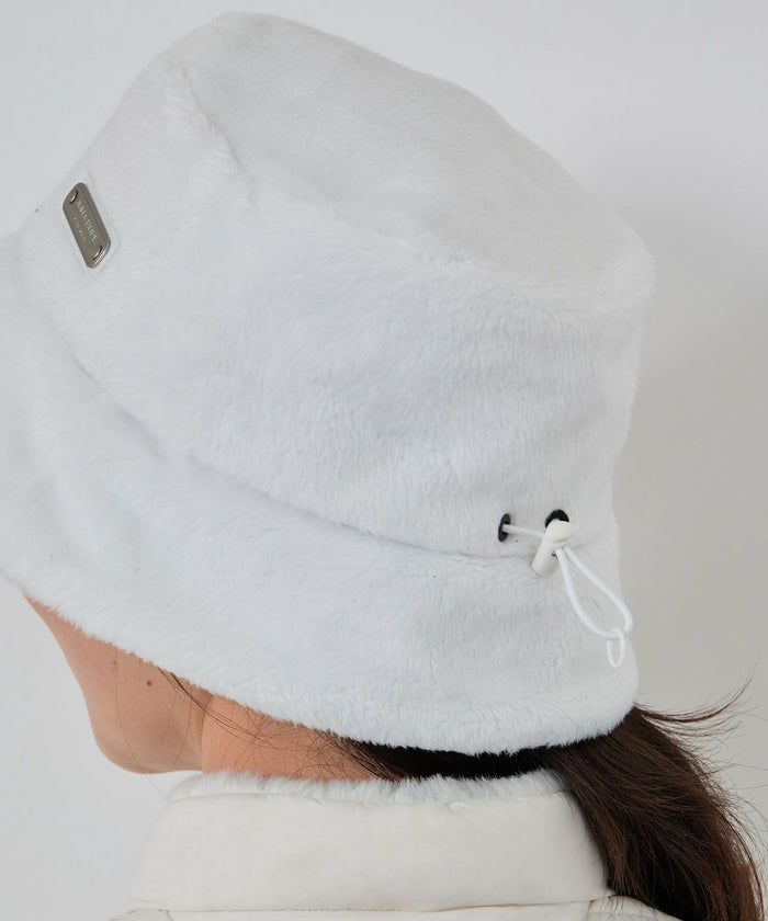 ふわっとしたボアフリース素材が女性らしい柔らかな印象を演出するハット。