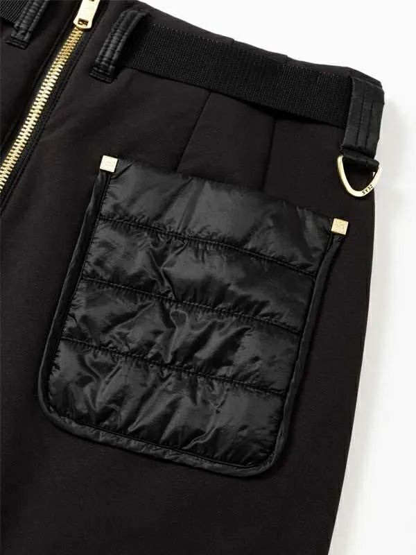 スカート 異素材コンビ 保温 防風 撥水 中綿キルト×ストレッチ布帛素材 テープベルト付き ロゴワッペン FLEECE COMBI SKIRT