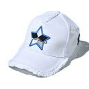 キャップ メッシュキャップ ダメージ加工 スター刺繍 ロゴ刺繍 ゴルフ