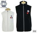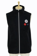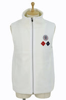 ベスト フルジップベスト 保温 軽量 ストレッチ 後身頃撥水 異素材コンビ ボア×ストレッチポリエステル素材 ロゴワッペン ゴルフウェア