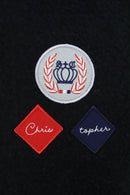 胸元に刺繍ワッペンを3つ添え、遊び心をプラス。