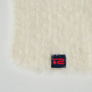 暖かみのあるフェザーヤーン(羽のような糸)を使用したリブ編みのネックウォーマー。
