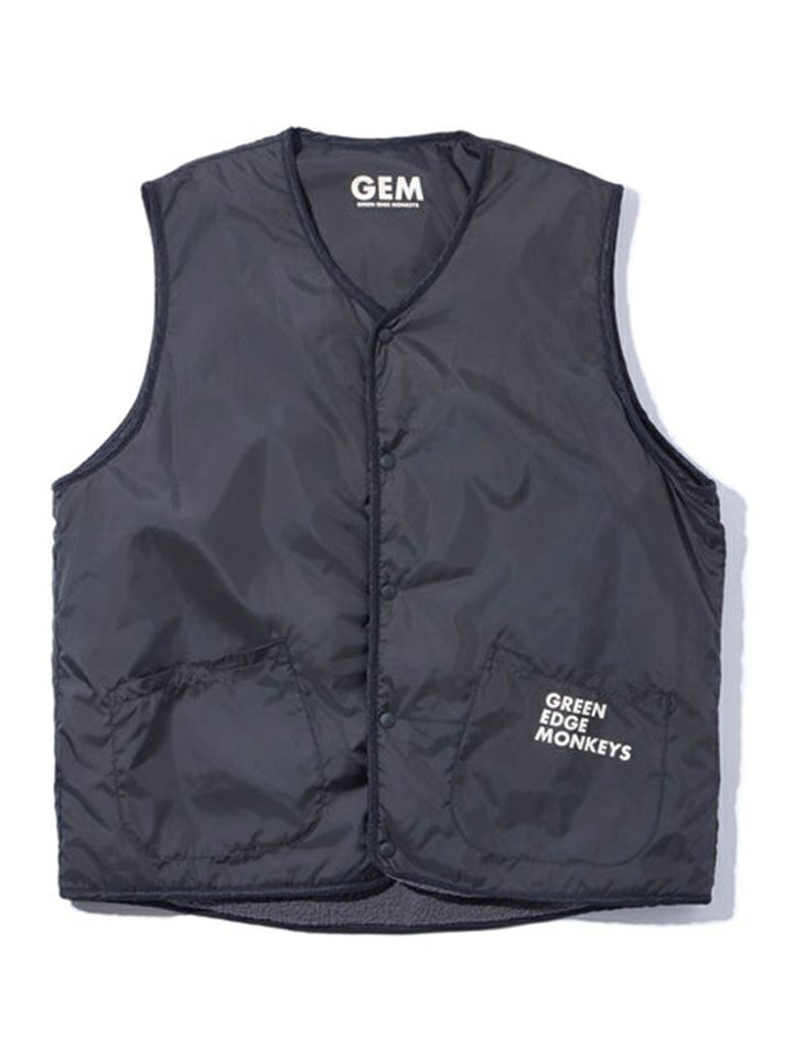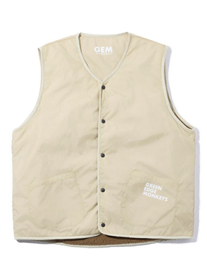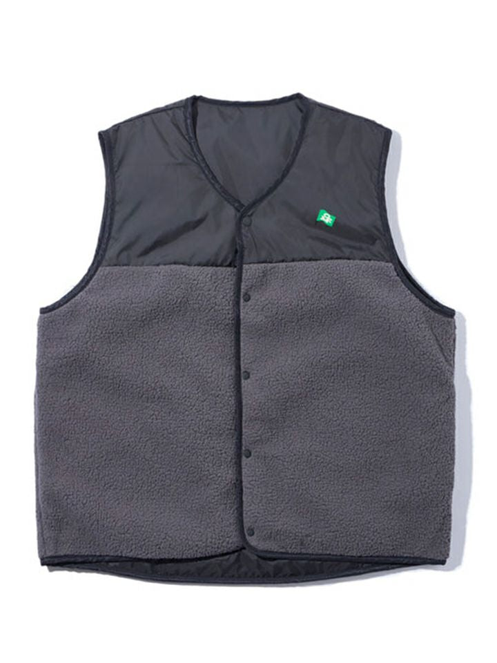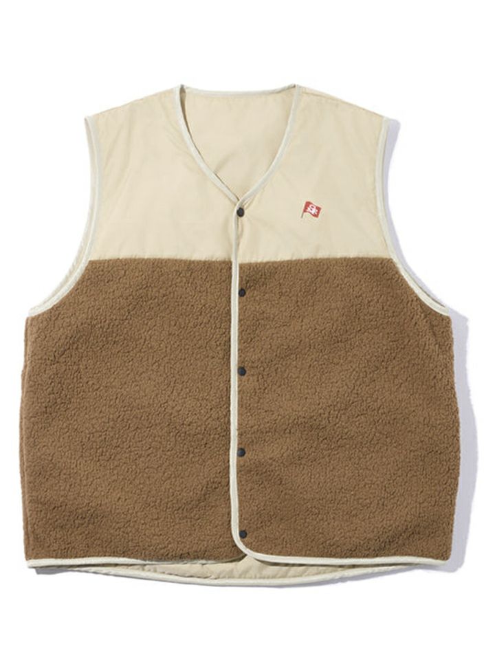 ベスト Vネック リバーシブルベスト スナップボタン仕様 ボア素材 保温 モンキーロゴプリント 2WAY