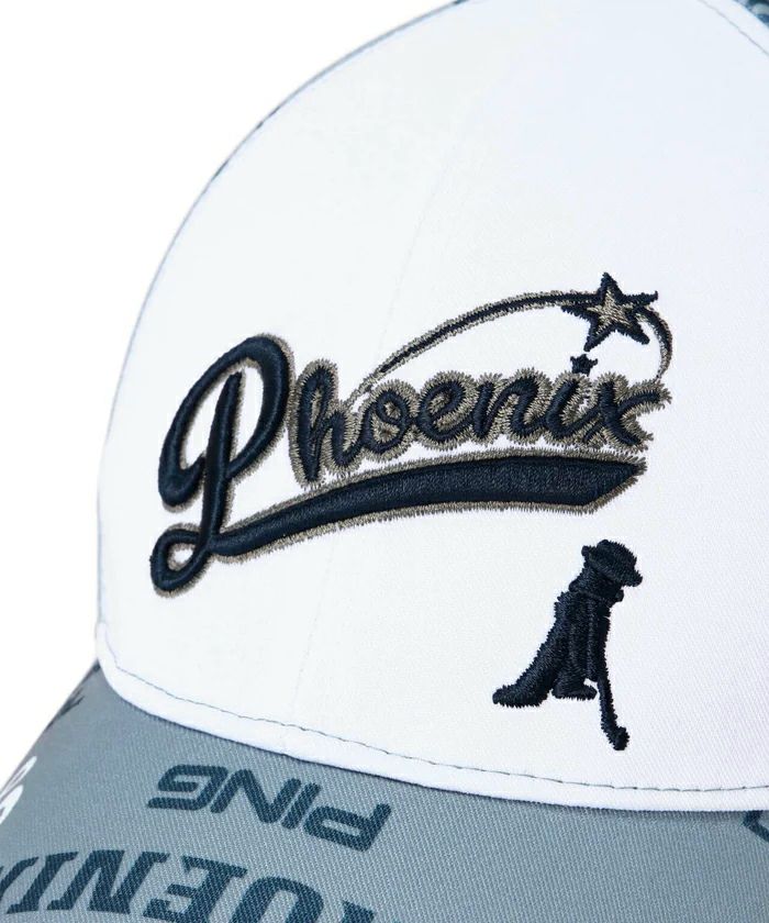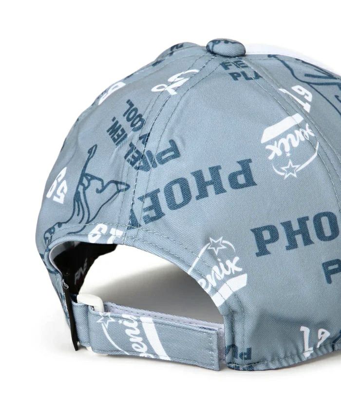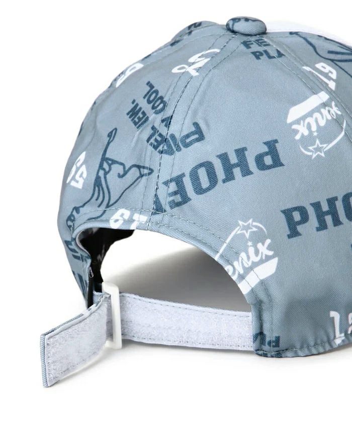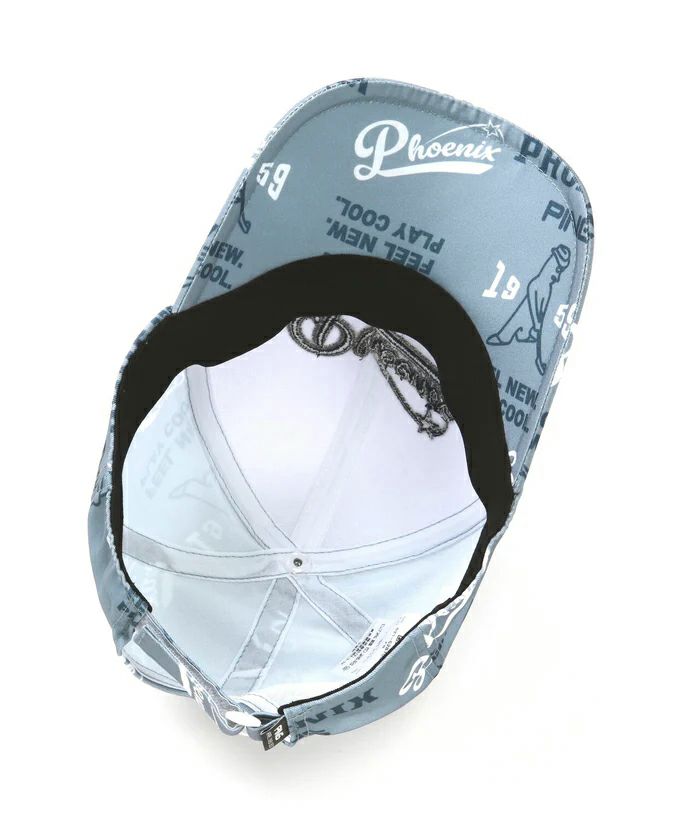ソリッドのフロントパネルにPINGの人気キャラクターのMr.PINGと筆記体のロゴを入れた、Mr.PING総柄プリントキャップ。