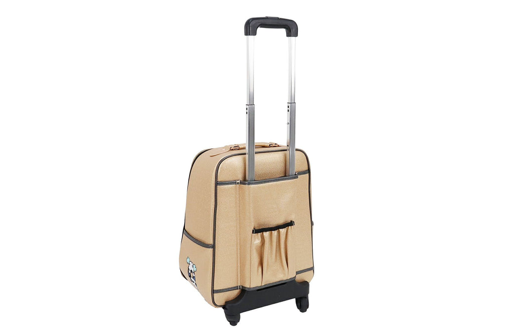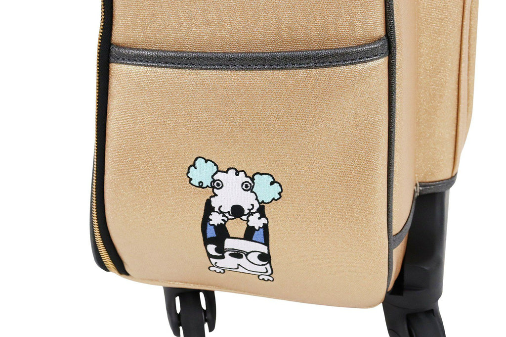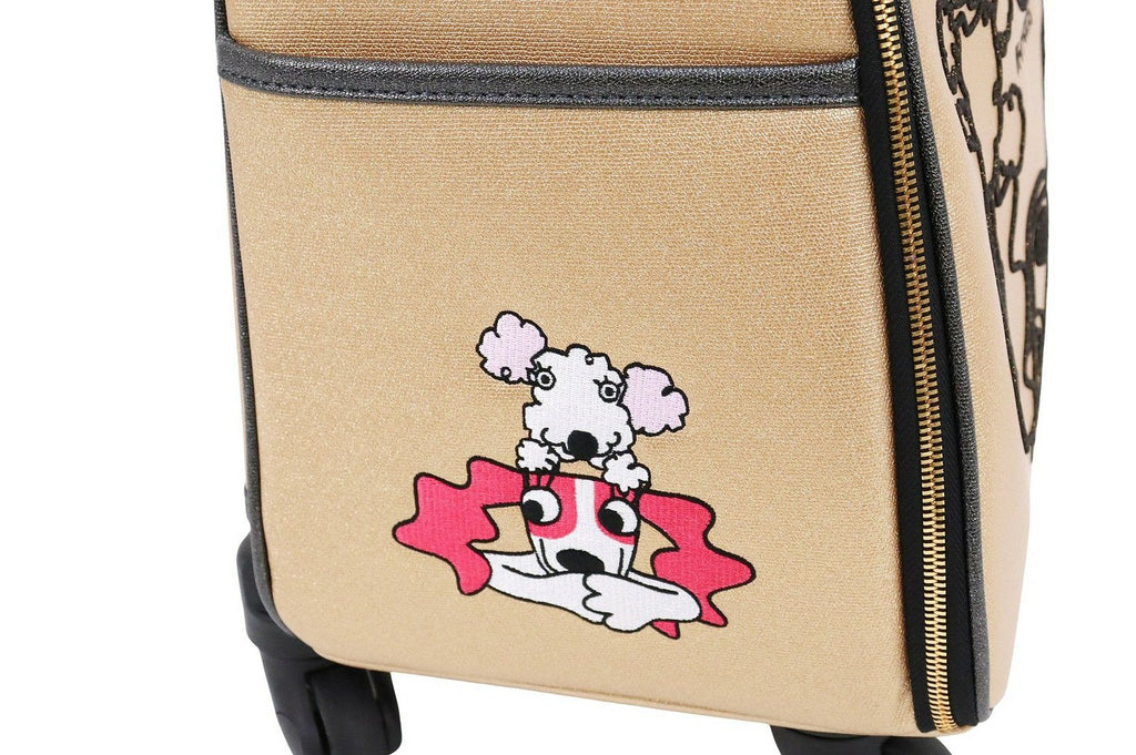 煌びやかなのは素材の生地だけではなく、キャリーバック全体に施された刺繍にもこだわりが。