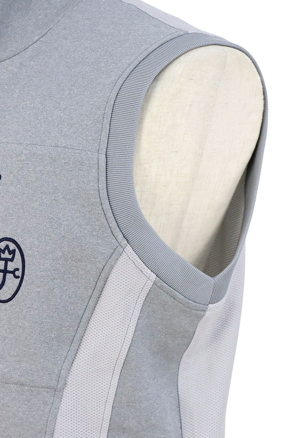 ベスト フルジップベスト 前開き ダンボールニット×メッシュ素材 異素材コンビ UVカット 胸ポケットデザイン バックロゴプリント ロゴ刺繍 ゴルフウェア