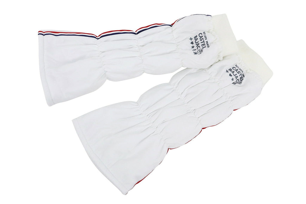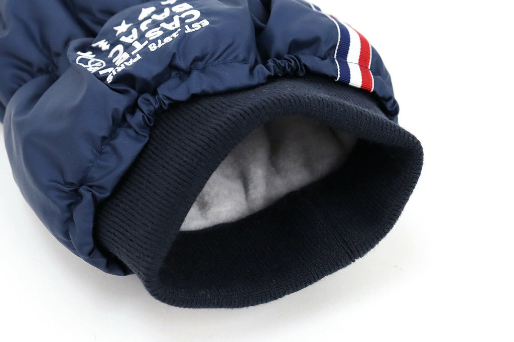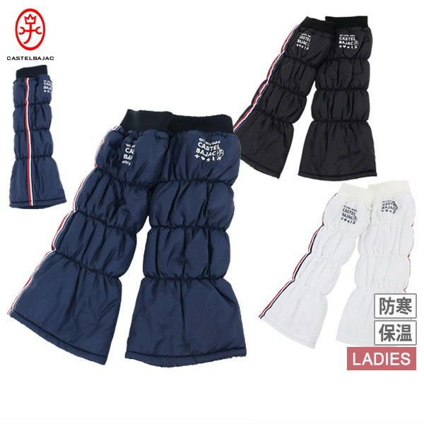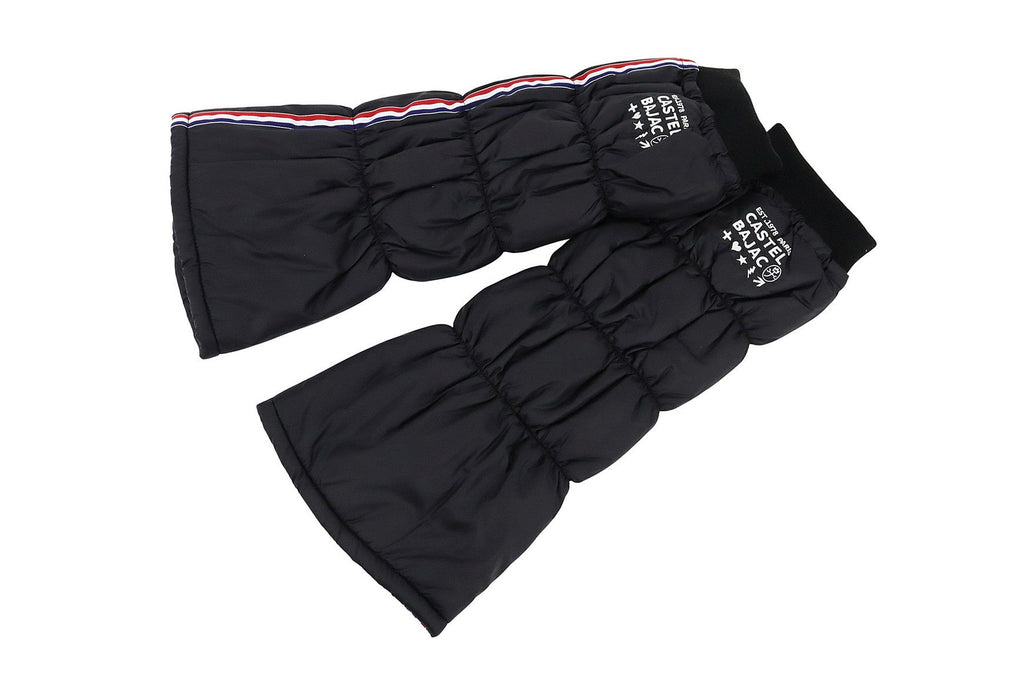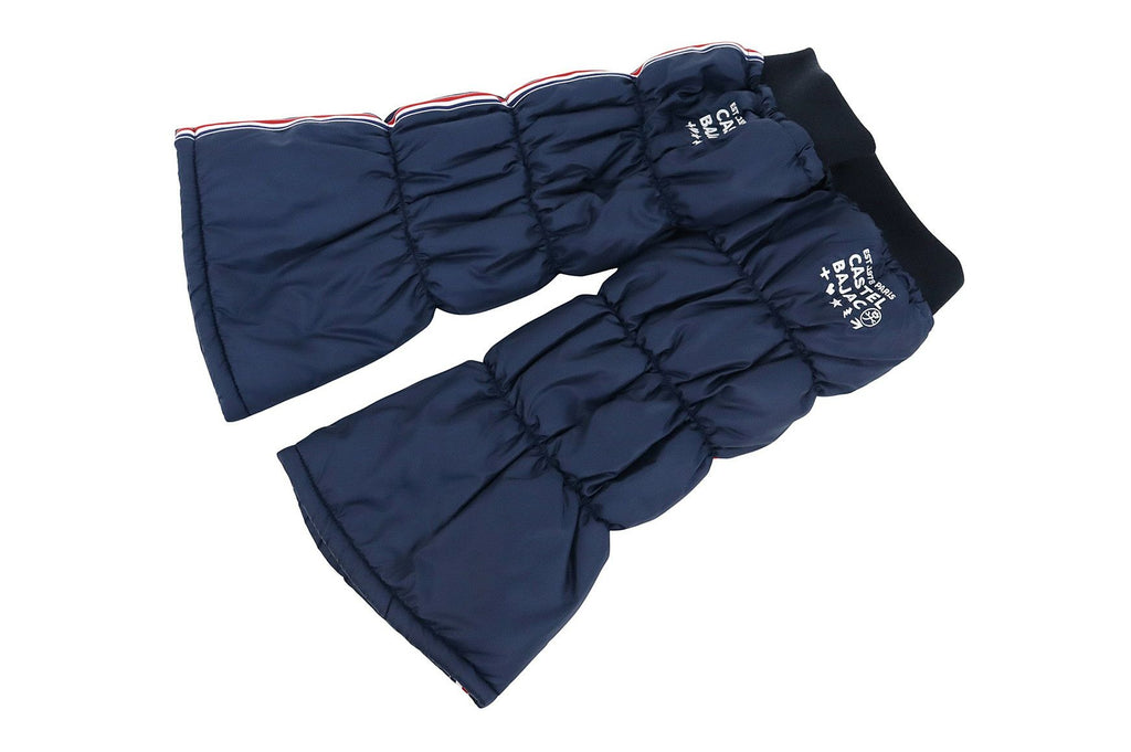 レッグウォーマー 中綿レッグウォーマー 裏起毛 保温 トリコロールテープデザイン ロゴ刺繍入 履き口リブ 上部スピンドル付   ゴルフ