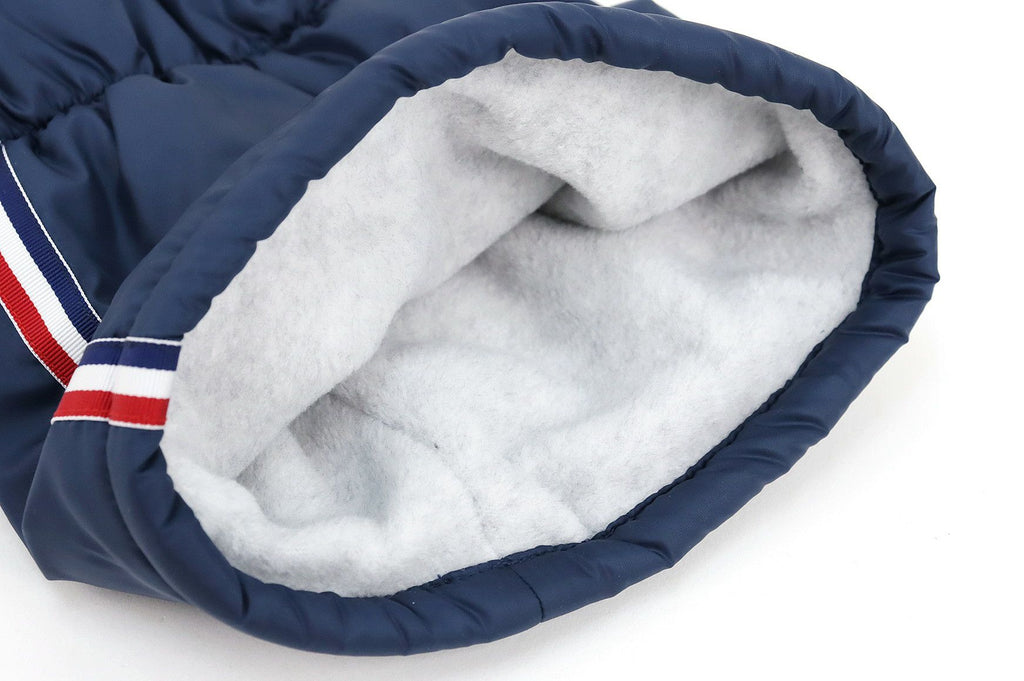 レッグウォーマー 中綿レッグウォーマー 裏起毛 保温 トリコロールテープデザイン ロゴ刺繍入 履き口リブ 上部スピンドル付 防寒対策 gift