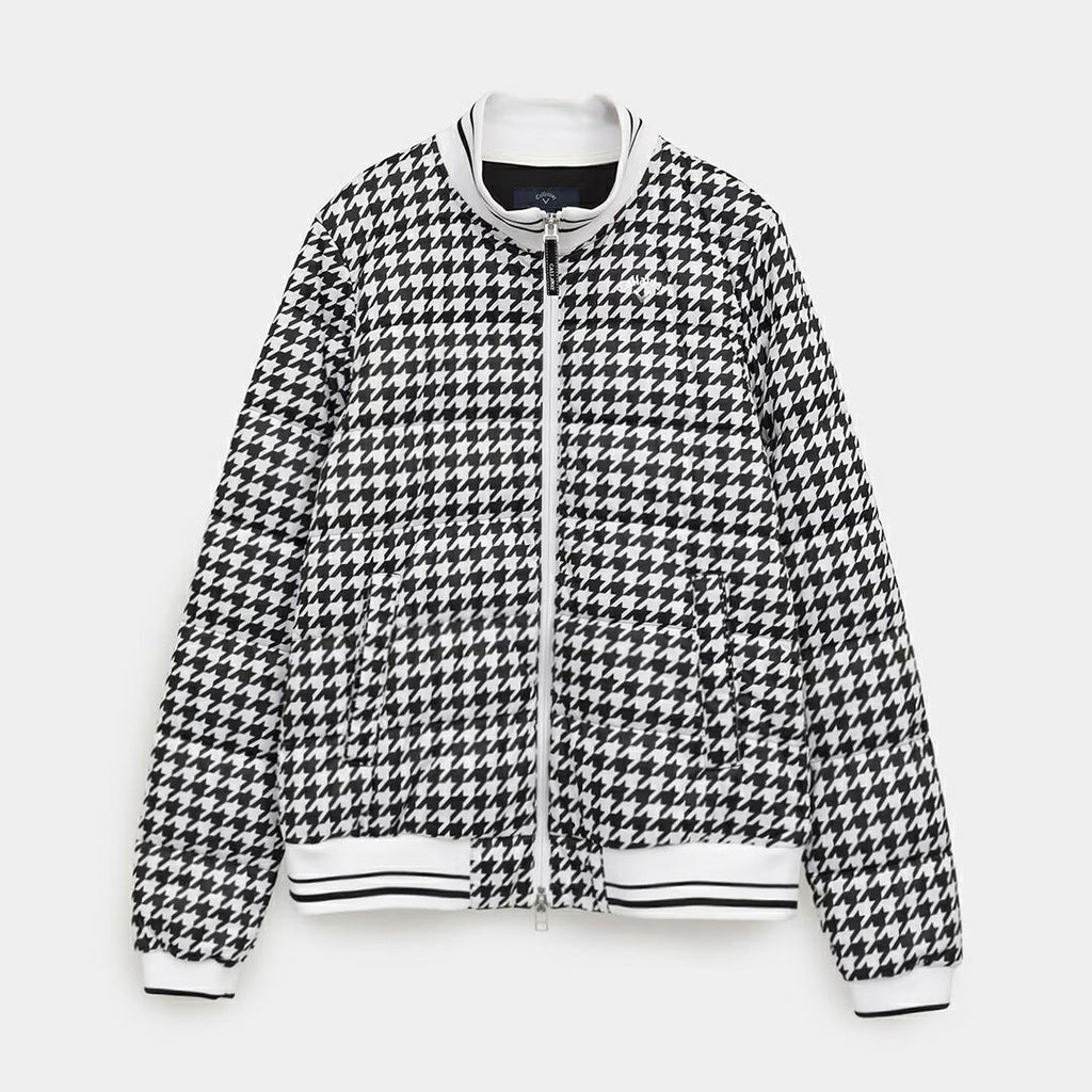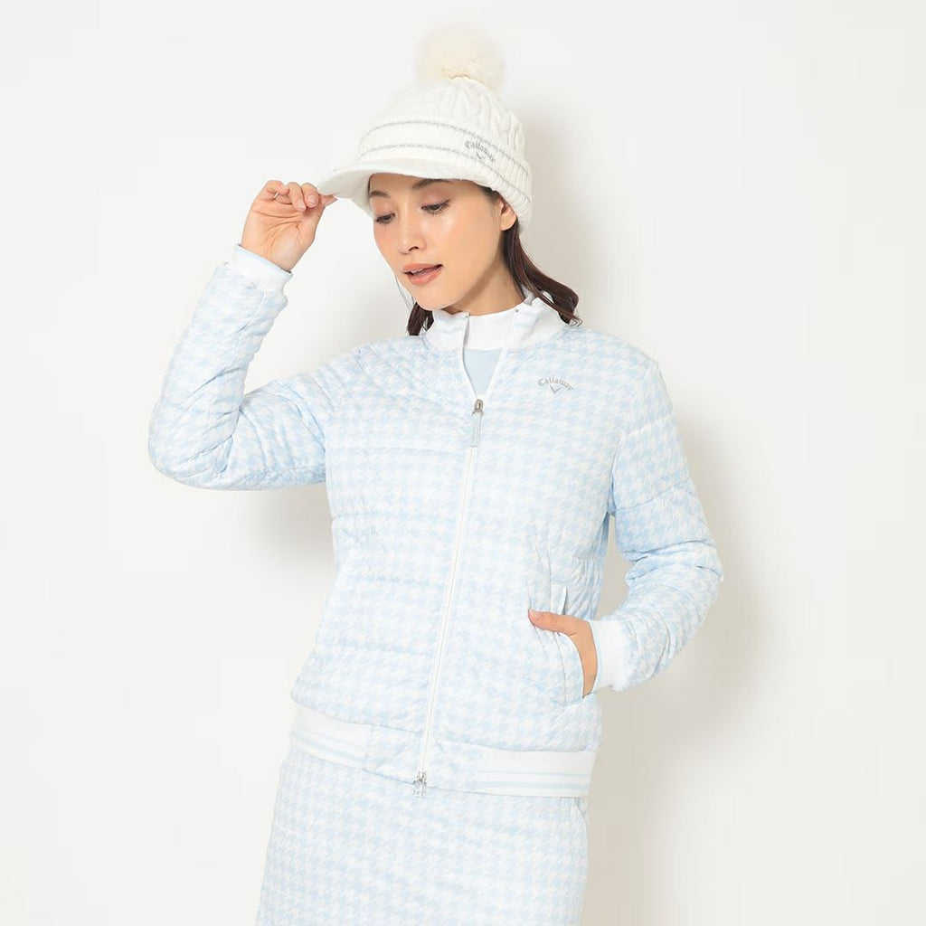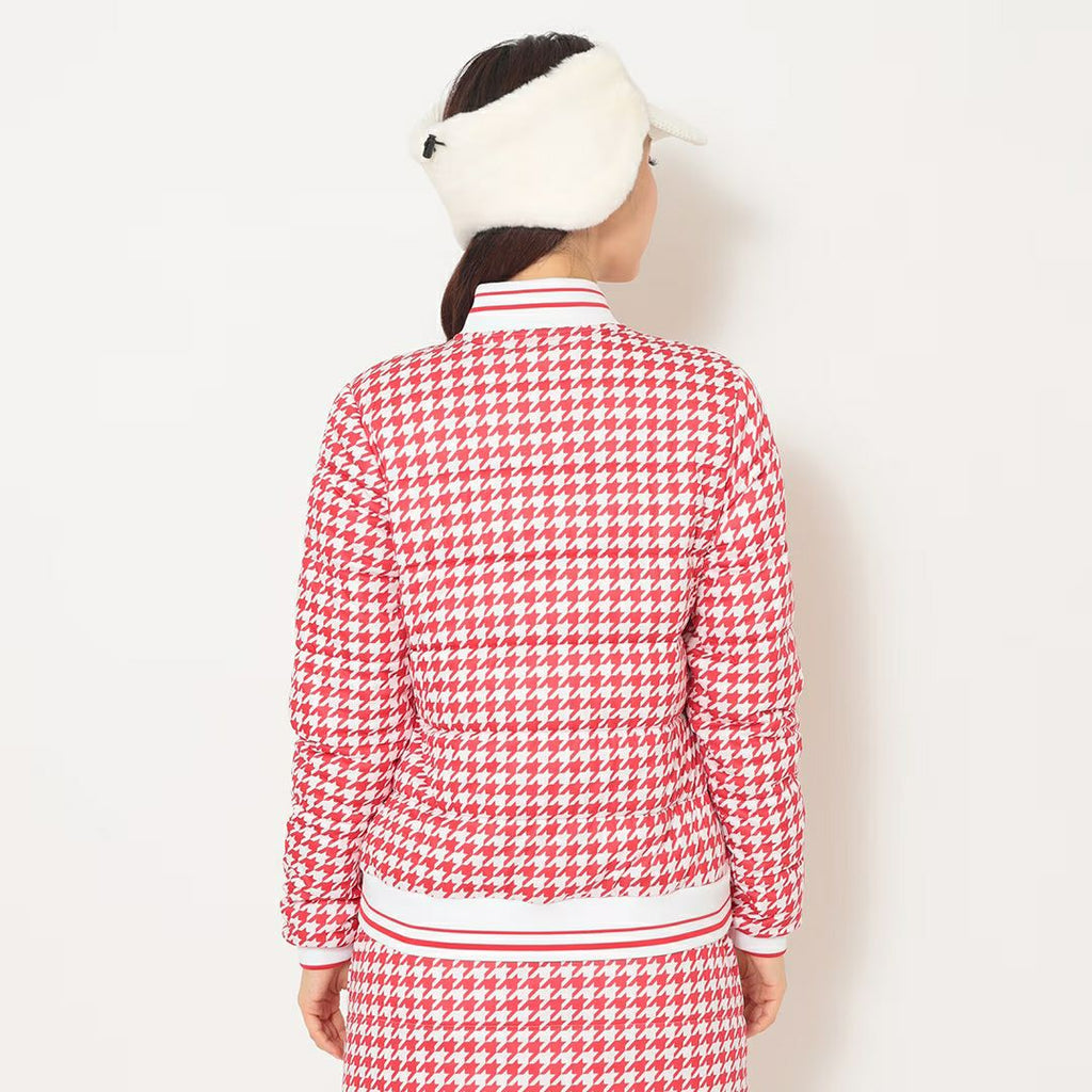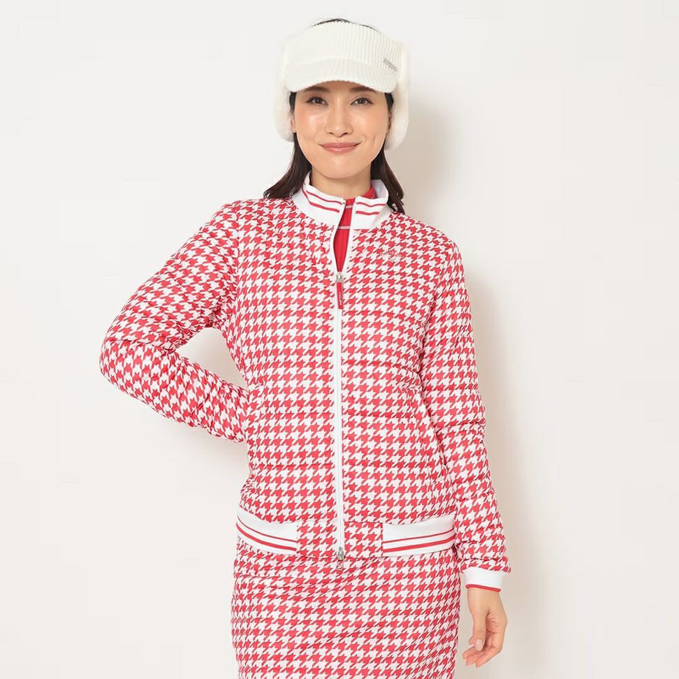 ブルゾン 中綿入り ストレッチ 保温 防寒 撥水 防風 千鳥柄 総柄 ロゴプリント ゴルフウェア