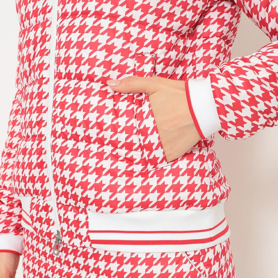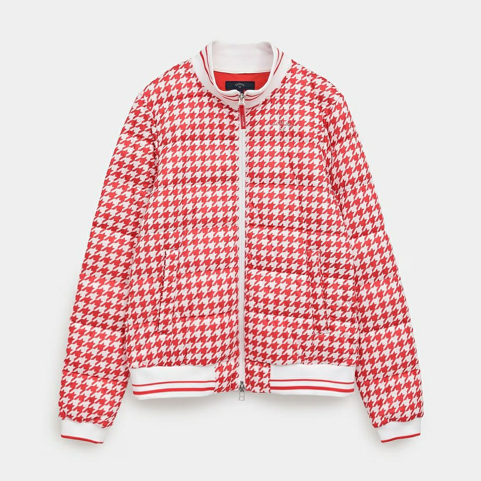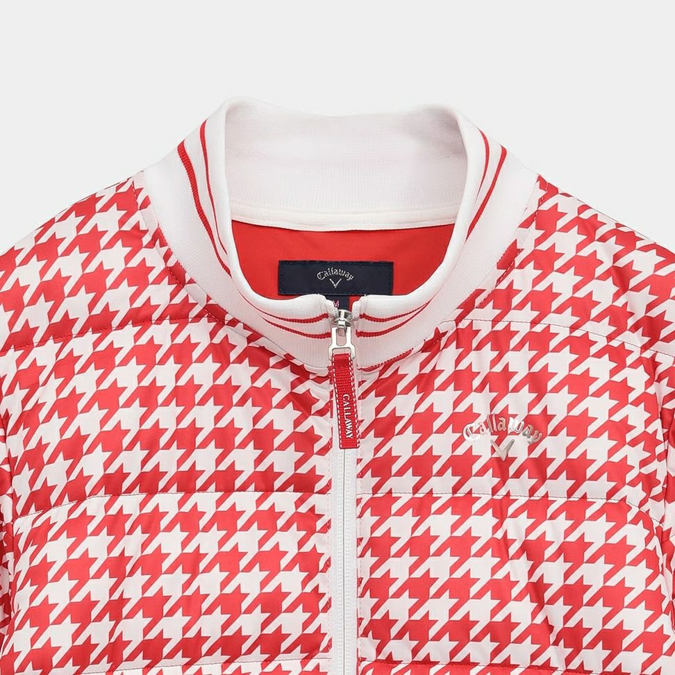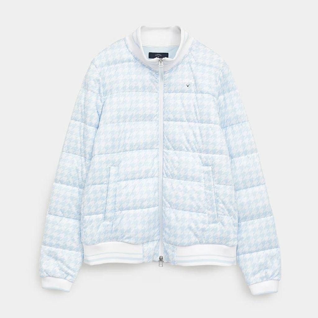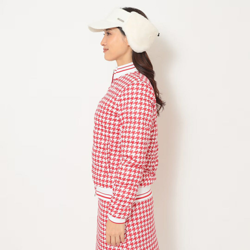 ブルゾン 中綿入り ストレッチ 保温 防寒 撥水 防風 千鳥柄 総柄 ロゴプリント ゴルフウェア