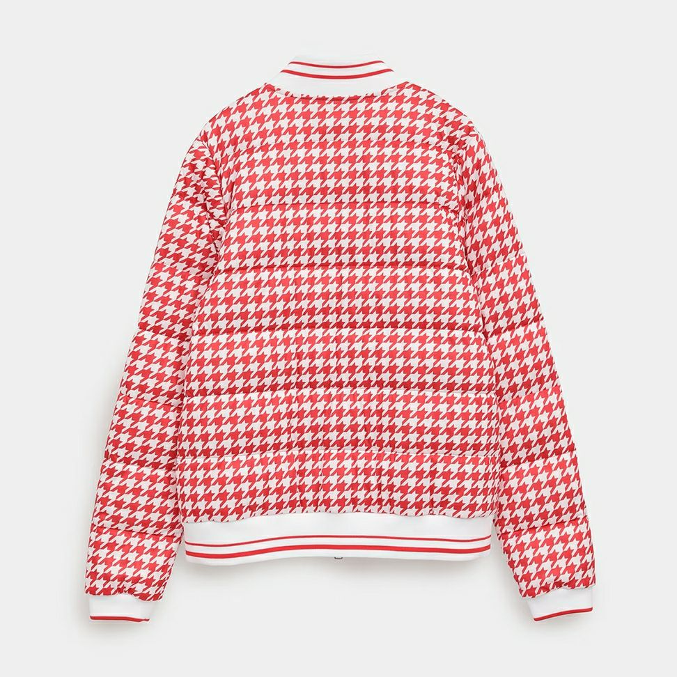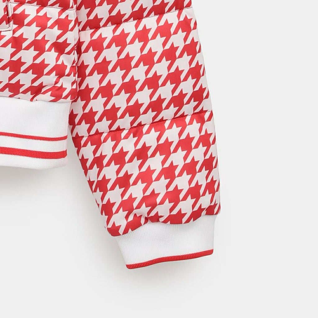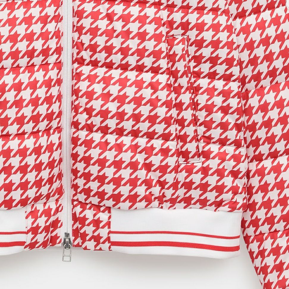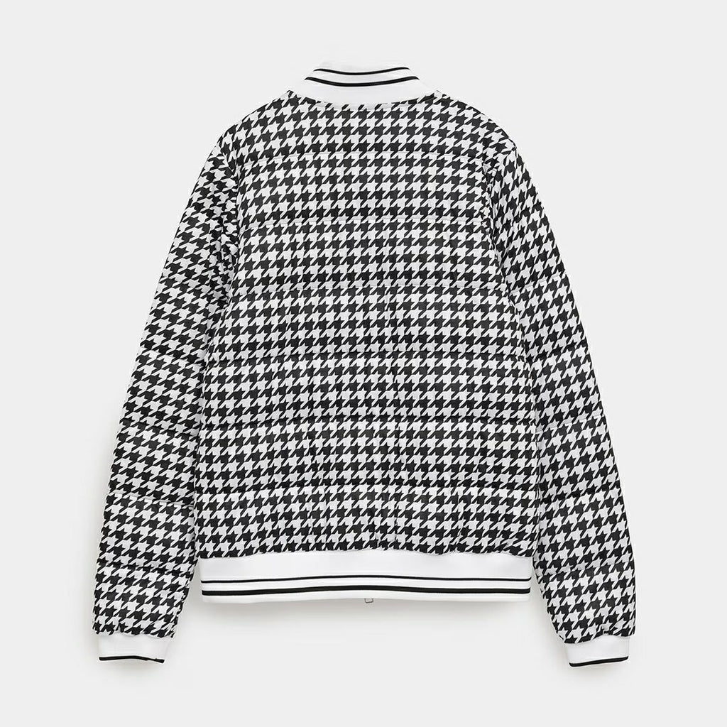 ブルゾン 中綿入り ストレッチ 保温 防寒 撥水 防風 千鳥柄 総柄 ロゴプリント