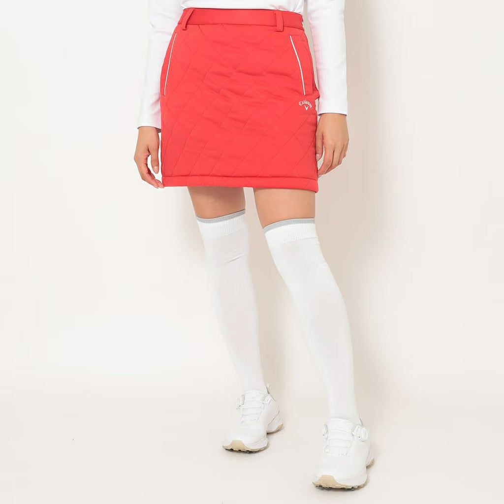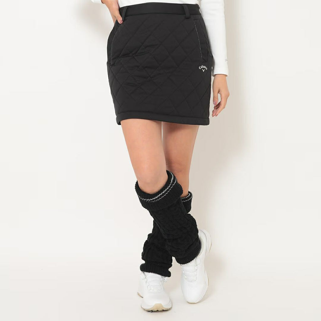 スカート 中綿スカート 台形スカートストレッチ 撥水 防風 保温 防寒 ウエスト一部ゴム キルティングデザイン ロゴプリント ゴルフウェア