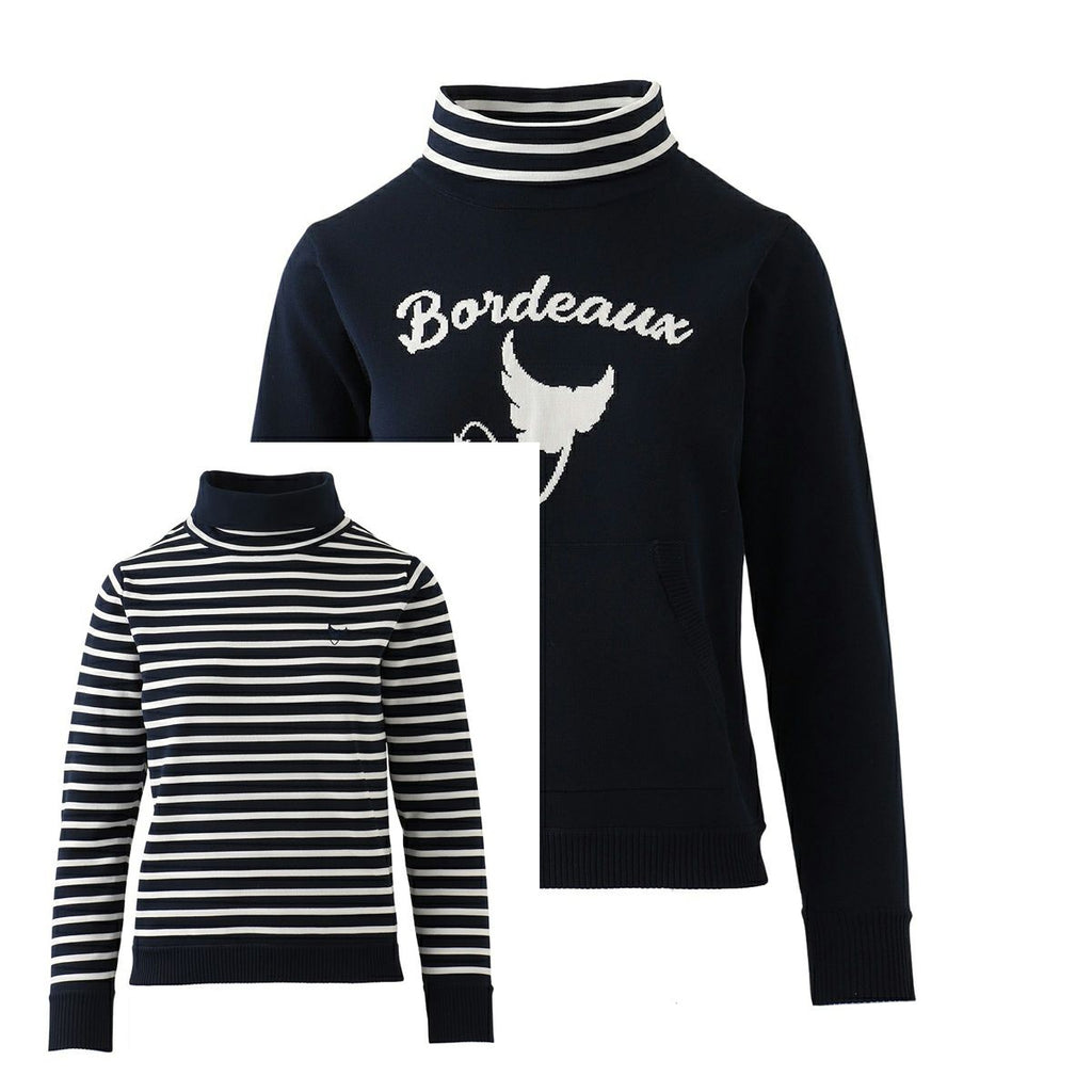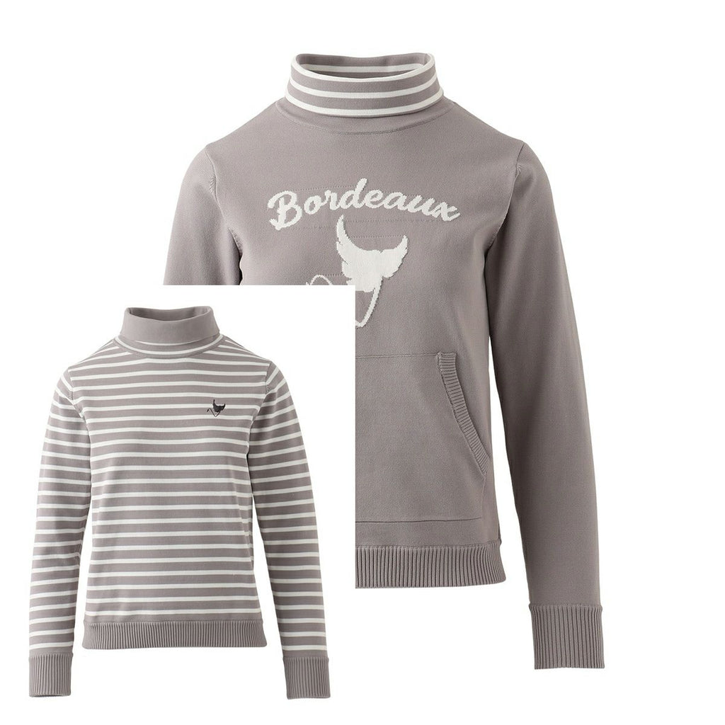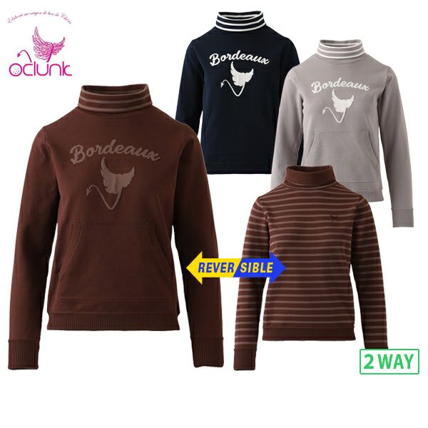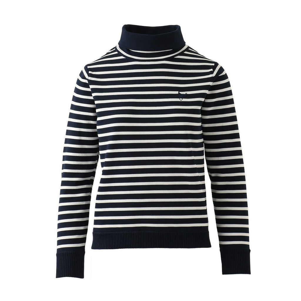 セーター タートルネック ハイネック リバーシブル 無地×ボーダー柄 ニットプルオーバー 軽量 ジャガードロゴ 2WAY カンガルーポケット ゴルフウェア
