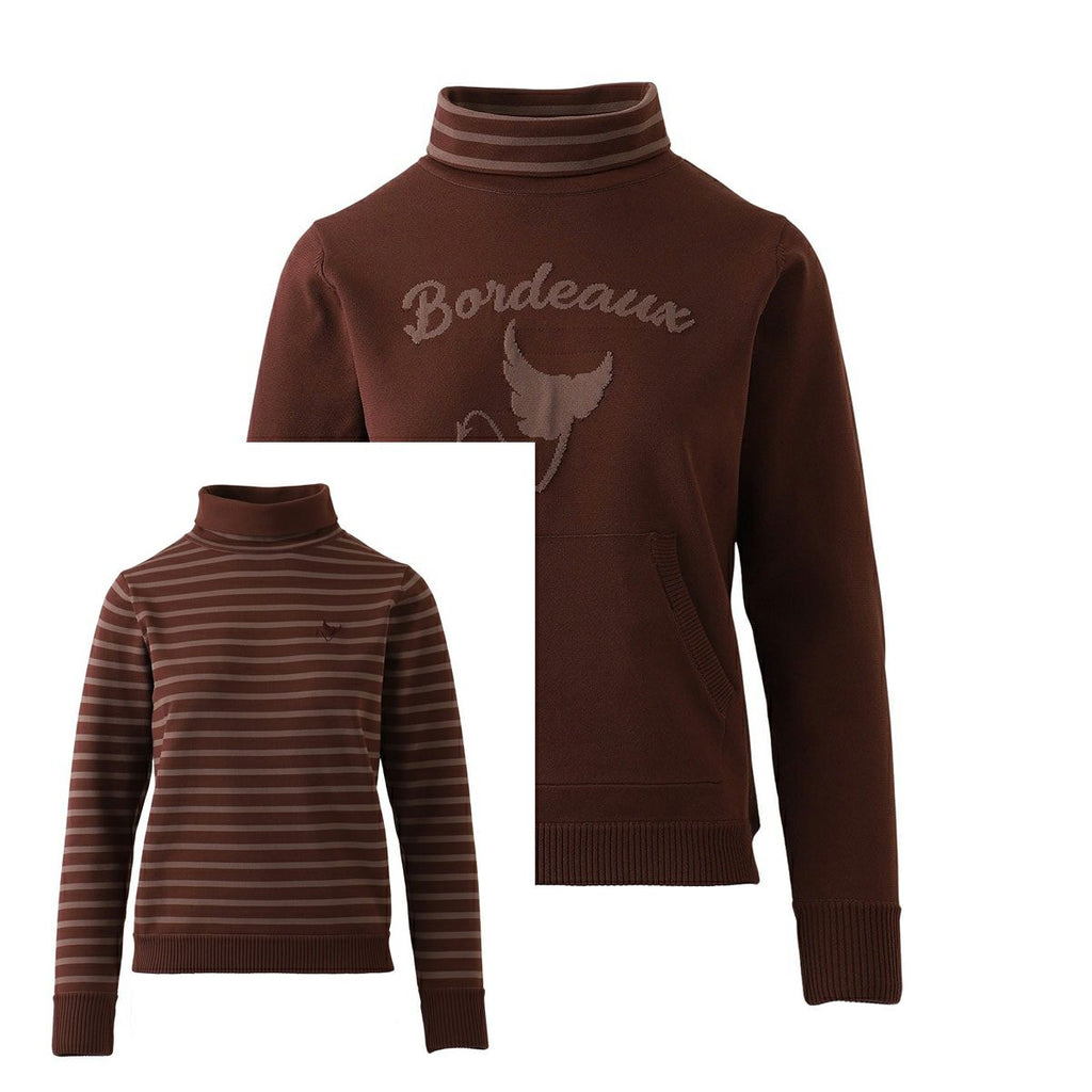 セーター タートルネック ハイネック リバーシブル 無地×ボーダー柄 ニットプルオーバー 軽量 ジャガードロゴ 2WAY カンガルーポケット