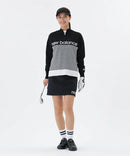 セーター ハーフジップセーター ニットプルオーバー ラメロゴプリント ボーダー柄 ハイネックにもなる ゴルフウェア