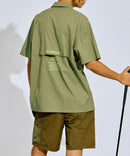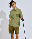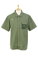 カジュアルシャツ 半袖 メッシュ調素材 高通気 軽量 後ろ身頃ベンチレーション ドロップショルダー 胸ポケット付き シリコンワッペン ゴルフウェア