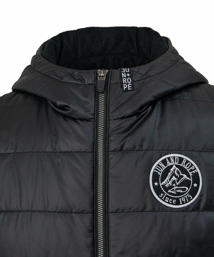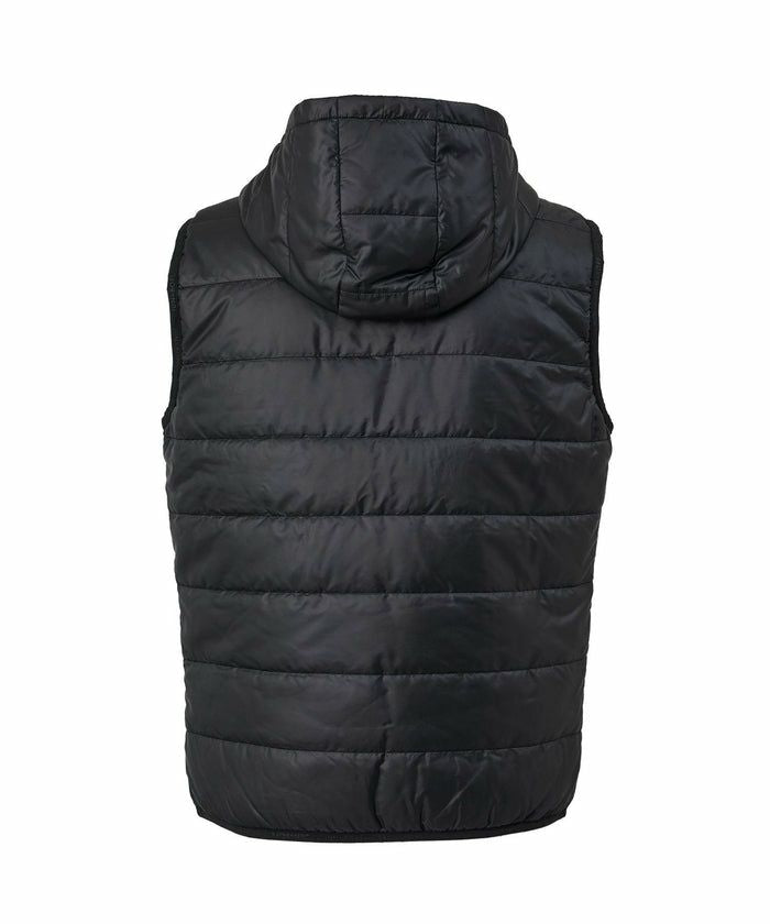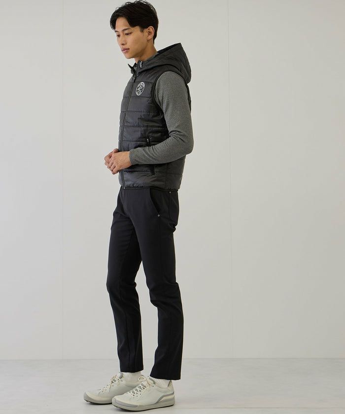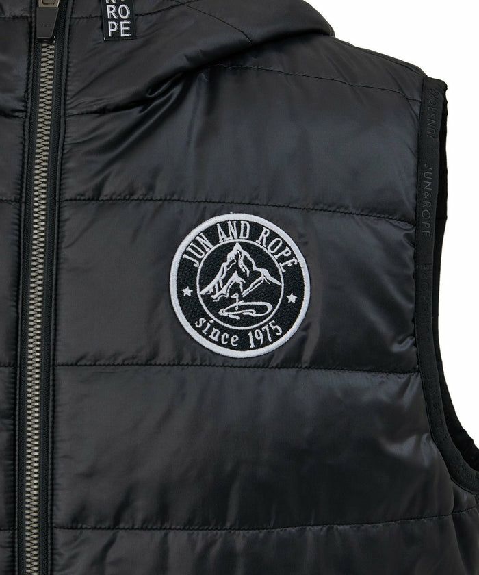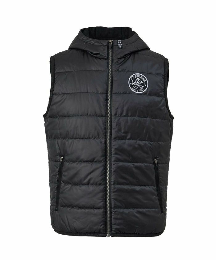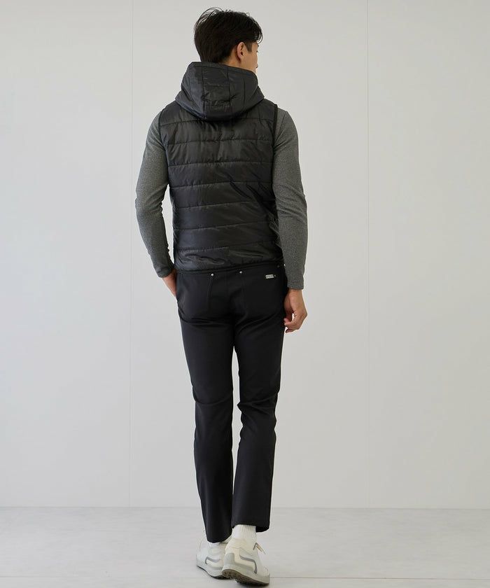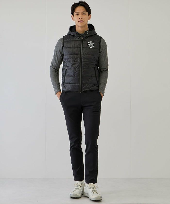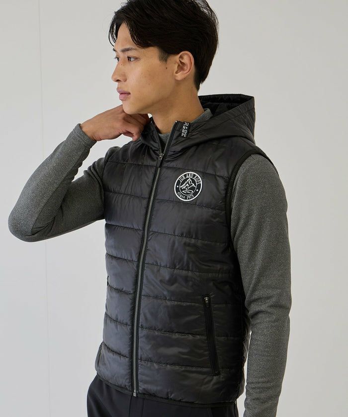 ベスト フード付き 中綿入り 裏微起毛 保温 発熱 撥水 防寒 タフタ素材 微光沢感 ロゴワッペン ゴルフウェア
