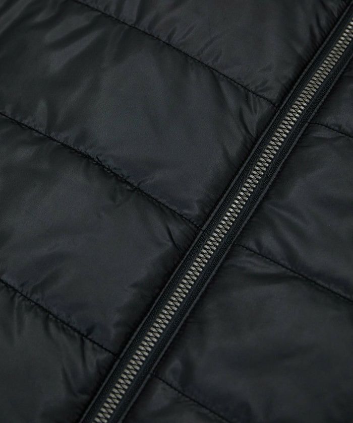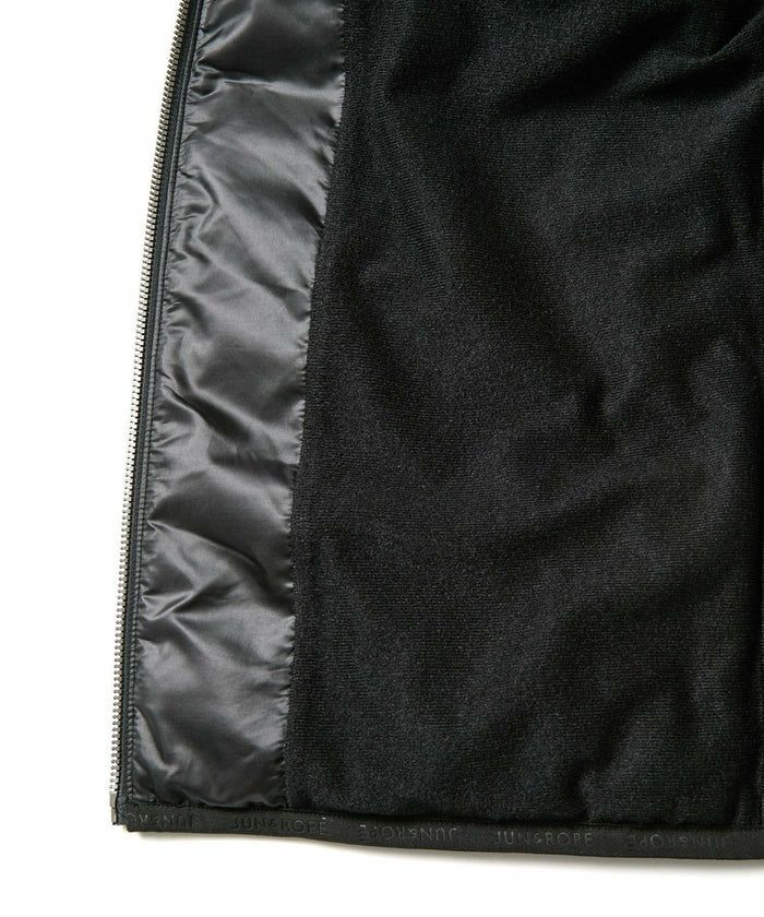 環境に配慮したリサイクルポリエステルを使用し、撥水と制電性も持ち合わせた高機能素材のフーディー中綿ベスト。