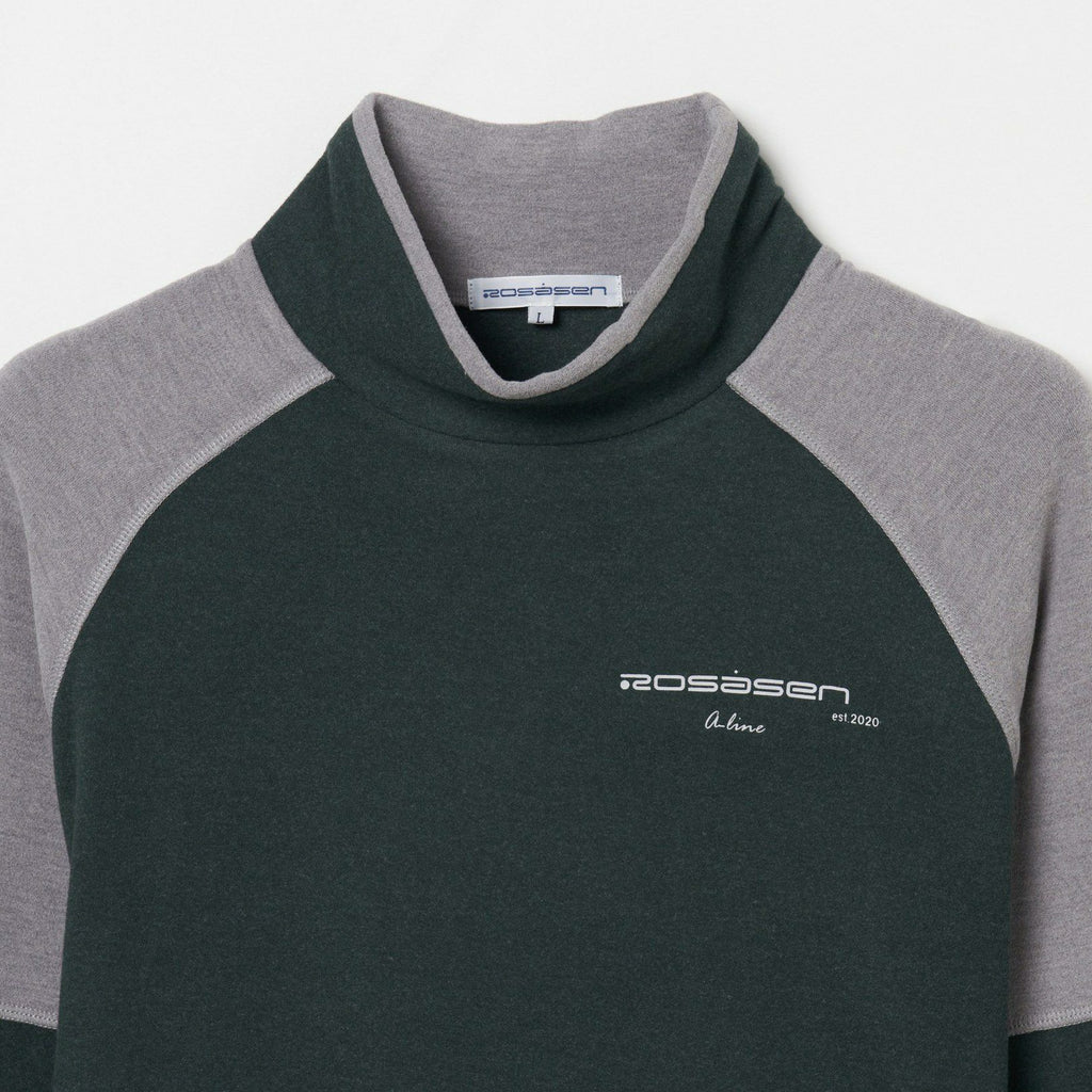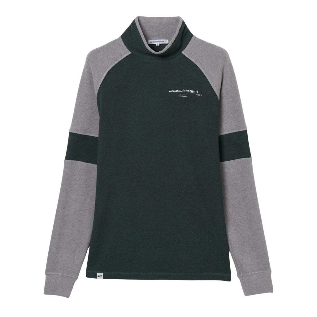 High neck shirt, long sleeves, slightly brushed material, moisture absorption and heat generation, stretch, heat retention, raglan sleeves, color scheme design, logo print, mock neck, golf wear