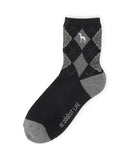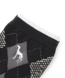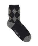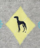 These short socks feature an attractive combination of argyle patterns and salukis that enhance the traditional style.