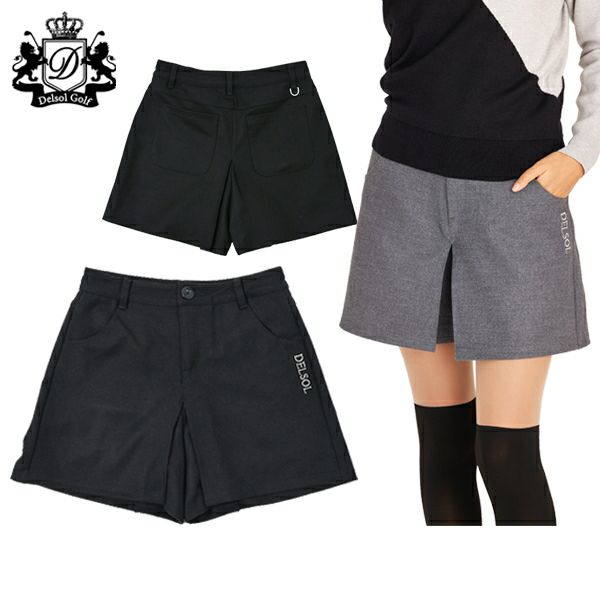 Pants, Shorts, Pleated Culottes, Wool-style, Logo Embroidered, M-3L, Culotte Pants, Culotte Skirt, Golf Wear