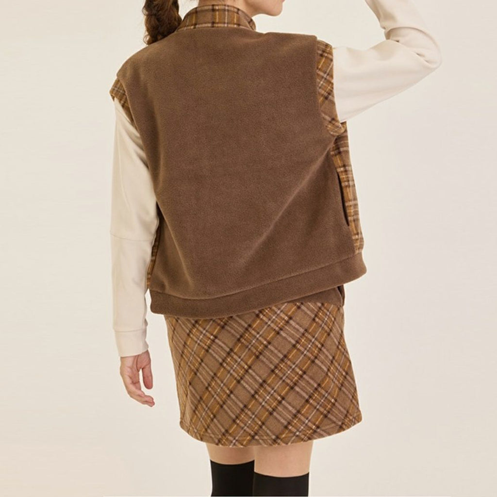 Light and warm checkered fleece that is easy to move in and comfortable to wear.Vest