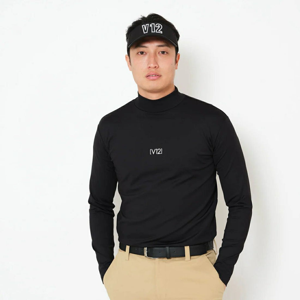 High neck shirt, long sleeves, fleece lining, warmth, cold protection, logo print, available from M to 3L, mock neck, golf wear