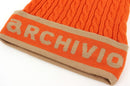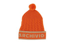 Knit hat, knit cap, with pom pom, Alan knit, color scheme line, logo jacquard, wool blend, cable knit