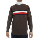 Sweater knit crew neck Far infrared heat insulation edition design Signature stripe pattern golf wear