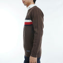 Sweater knit crew neck Far infrared heat insulation edition Switching design signature stripe pattern