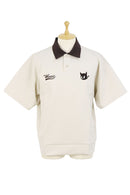 Polo shirt, short sleeve, UV protection, light stretch punch material, cotton blend, hem switching design, relaxed silhouette, wakky logo patch, golf wear