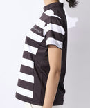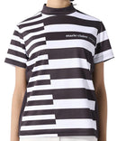 High Neck Shirt Short Sleeve Mock Neck Shirt UV Cut Contact Cold Sweat Sweat East Dry Panel Border Print Golf Wear