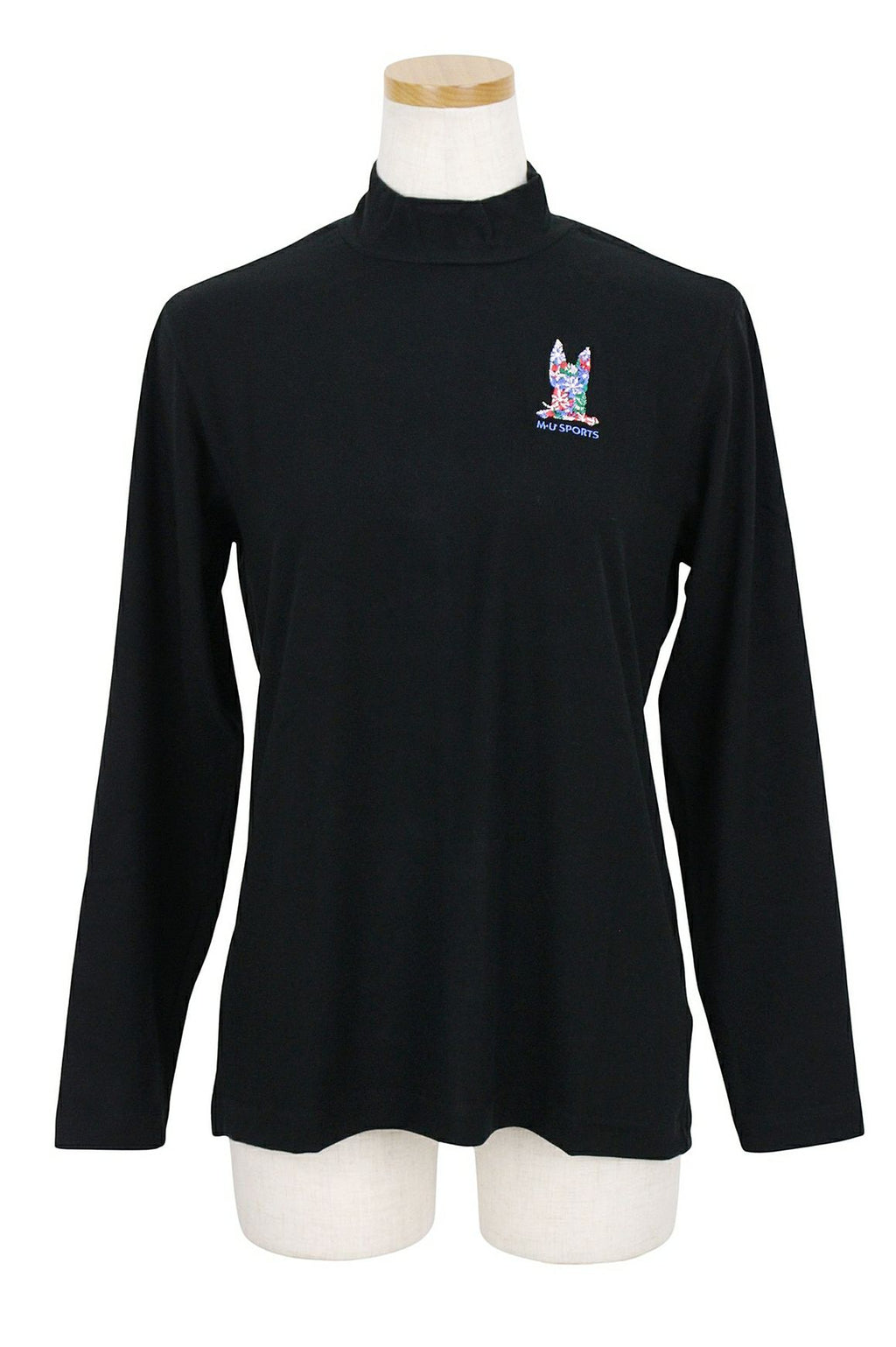 High neck shirt, long sleeve, mock neck shirt, thermal insulation, stretch, slightly brushed material, armo, dog, flower embroidery, can also be used as an inner shirt, golf wear