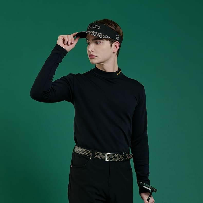 High neck shirt, long sleeve, mock neck shirt, inner shirt, moisture absorption, heat generation, cold protection, brushed lining, logo embroidery, golf wear
