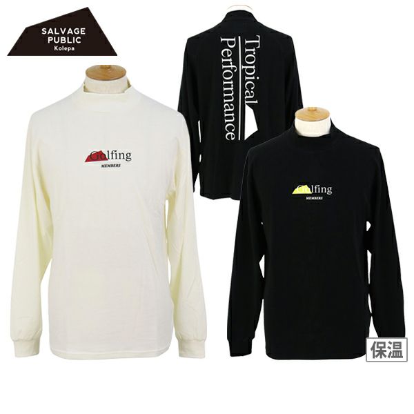 High neck shirt, long sleeves, slightly brushed lining, heat retention, moisture absorption, big back logo print, mock neck shirt, golf wear