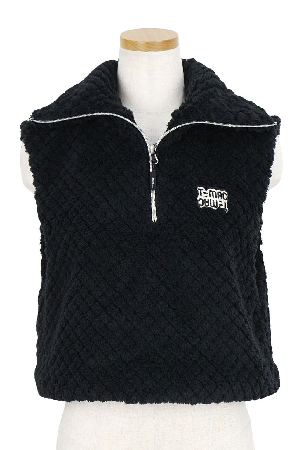 Vest fleece boaVest Short length, can also be used as a high neck, double-sided boa material, half zip, stretch, brushed lining, thermal insulation, logo patch, golf wear