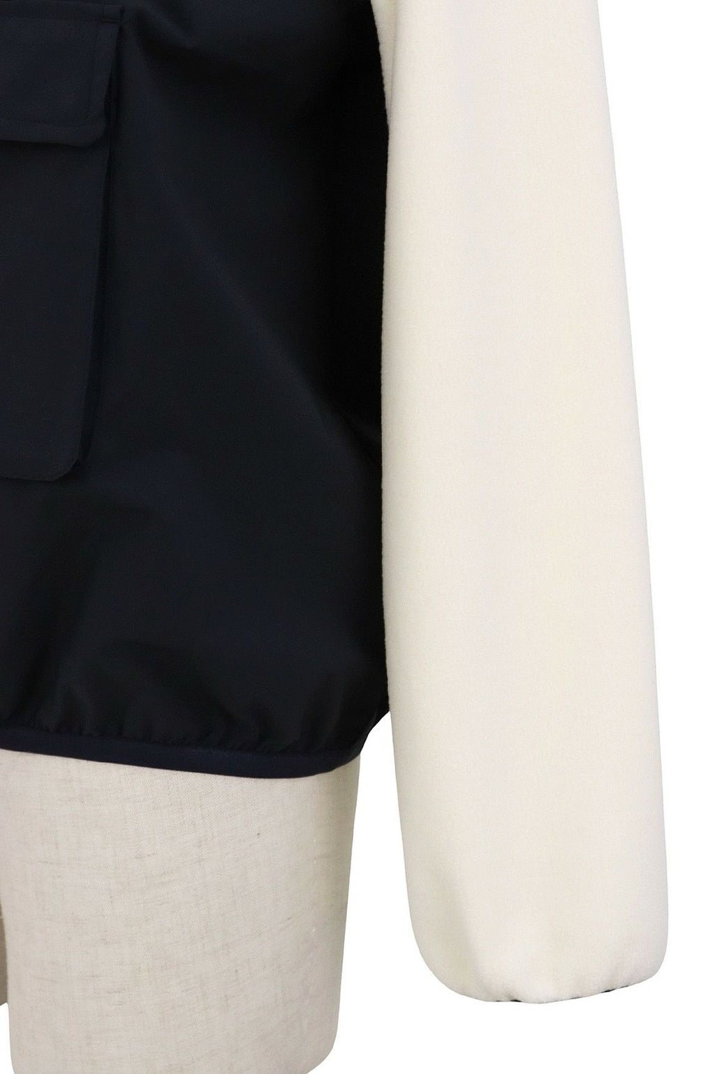 A light blouson featuring large front pockets and color matching on the sleeves. The sleeves are made of wool blend fleece material, and the lining is made of the popular "Octa" to ensure lightweight and heat retention. The embroidery on the flap and back is also a nice accent. This is a versatile outerwear that can be used for golf in the middle of winter depending on the inner layer. Available in two colors: beige and navy.